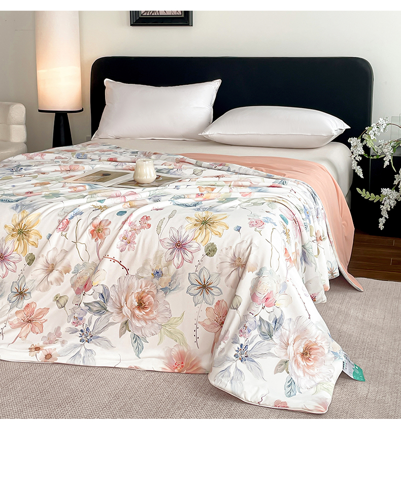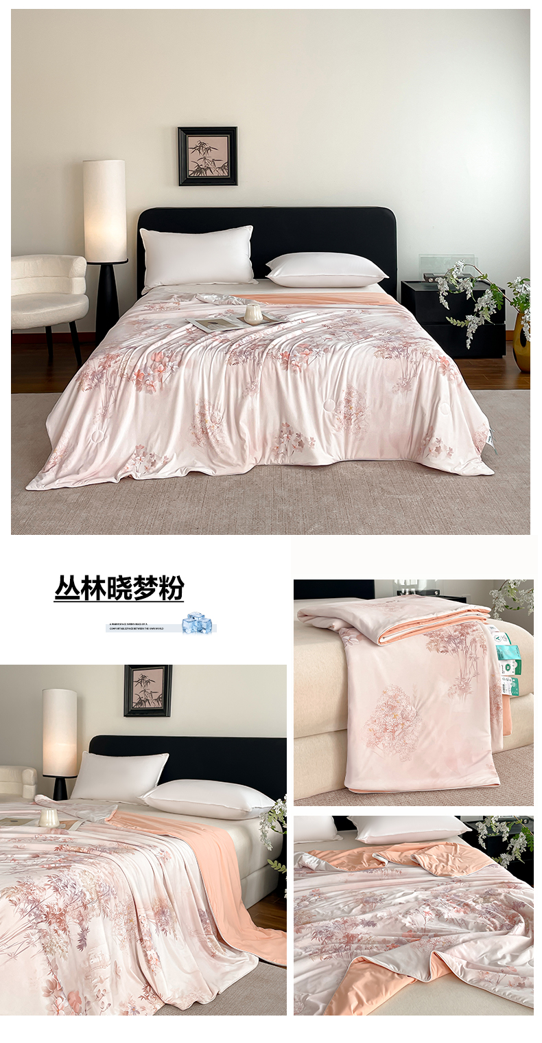 (总)鑫贝阳 2026新款锦氨凉感丝夏被,5D乐园-紫,丛林晓梦粉,花园兔-蓝,玫瑰庄园白,世外桃源紫,亚热带-绿