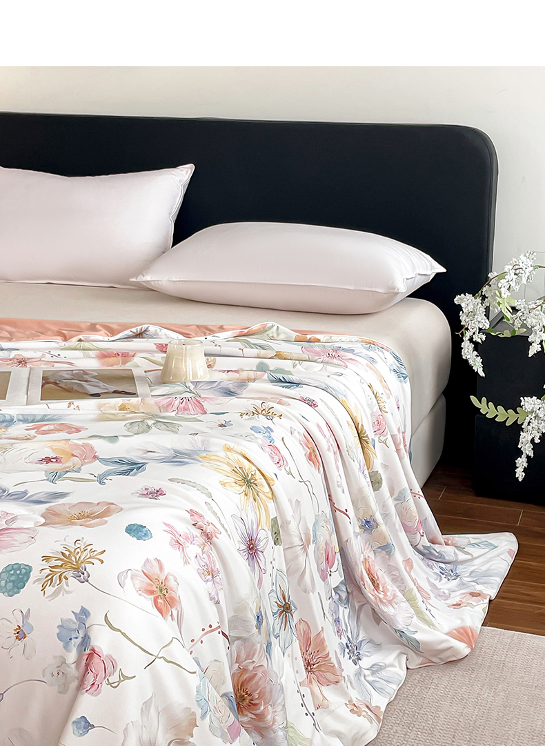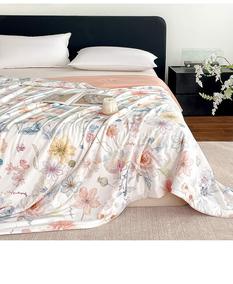 鑫贝阳 2026新款锦氨凉感丝夏被 玫瑰庄园白