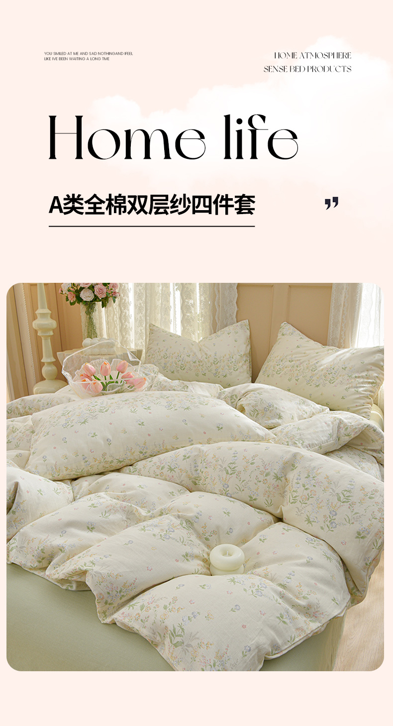 (总)乐窝家纺仓储 2026年新款高密A类母婴级全棉双层纱四件套学生宿舍三件套床单被套