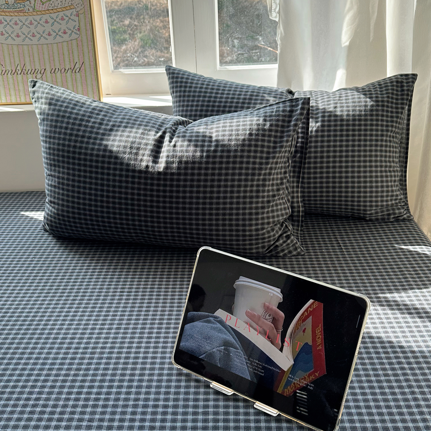 六巷胡同 2026新款A类全棉纯棉水洗棉色织格子单品枕套 枕套单件 巷往-灰格