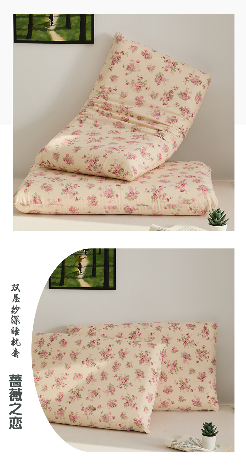 商品名称:百寐 2026新款全棉纯棉A类双层纱立体记忆深睡枕芯保护套42*70纯棉枕套 蔷薇之恋