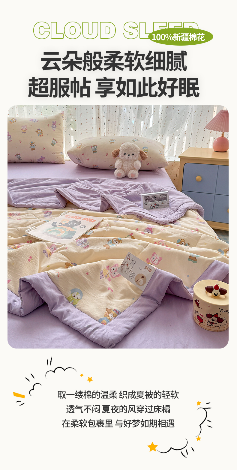 (总)尊妙被业 2026新款水洗棉棉花夏被100%新疆棉花填充包检测,爱心木马,繁花兔兔,萌兔小熊,萌趣小狗,旅途,浪漫花海,露思,蛋糕熊熊,木槿花,舒芙蕾,水洗格,甜心派派,童年木马,晚风恋月,小狗日记,芝士星星仔