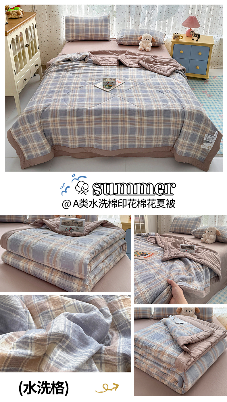 (总)尊妙被业 2026新款全棉色织水洗棉春秋被夏被-叠拍,春野-咖,灰细条,乐事-兰,乐事-绿,蜜格-灰,蜜格-米,莫妮-兰,莫妮-玉,沐妍-黄,千鸟格-灰,千鸟格-驼,童话-粉,晚晴-红,晚晴-咖