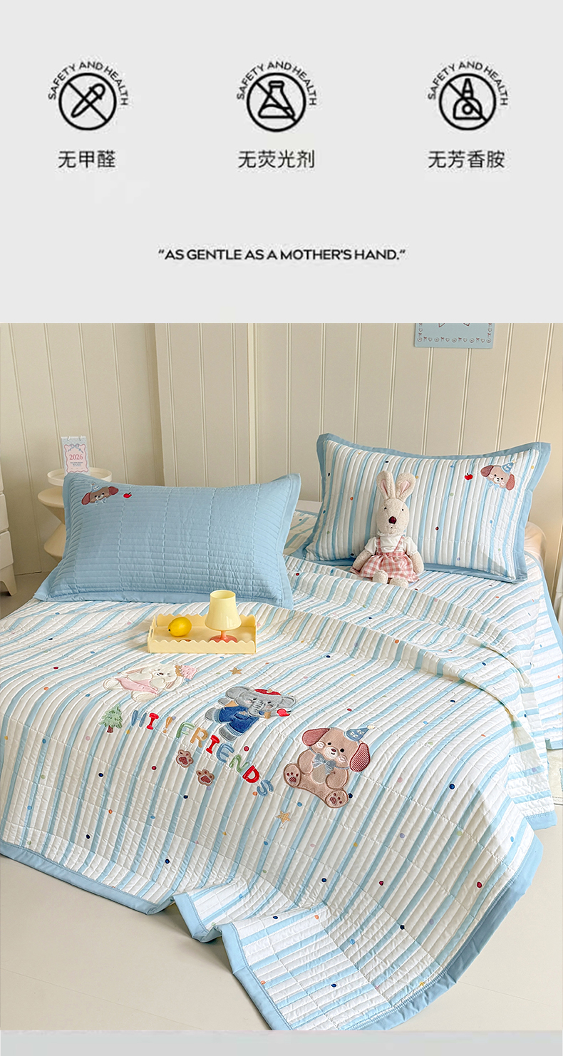 (总)优贝家纺 2026春夏新款韩系小清新水洗棉古法棉夹棉床盖四件套-风格二,杏芙萌犬,奶咖萌兔,时尚萌犬,桃粉花漾,甜心小熊,雾灰粉芙,星星萌宠,芋泥奶兔,芋雾花眠