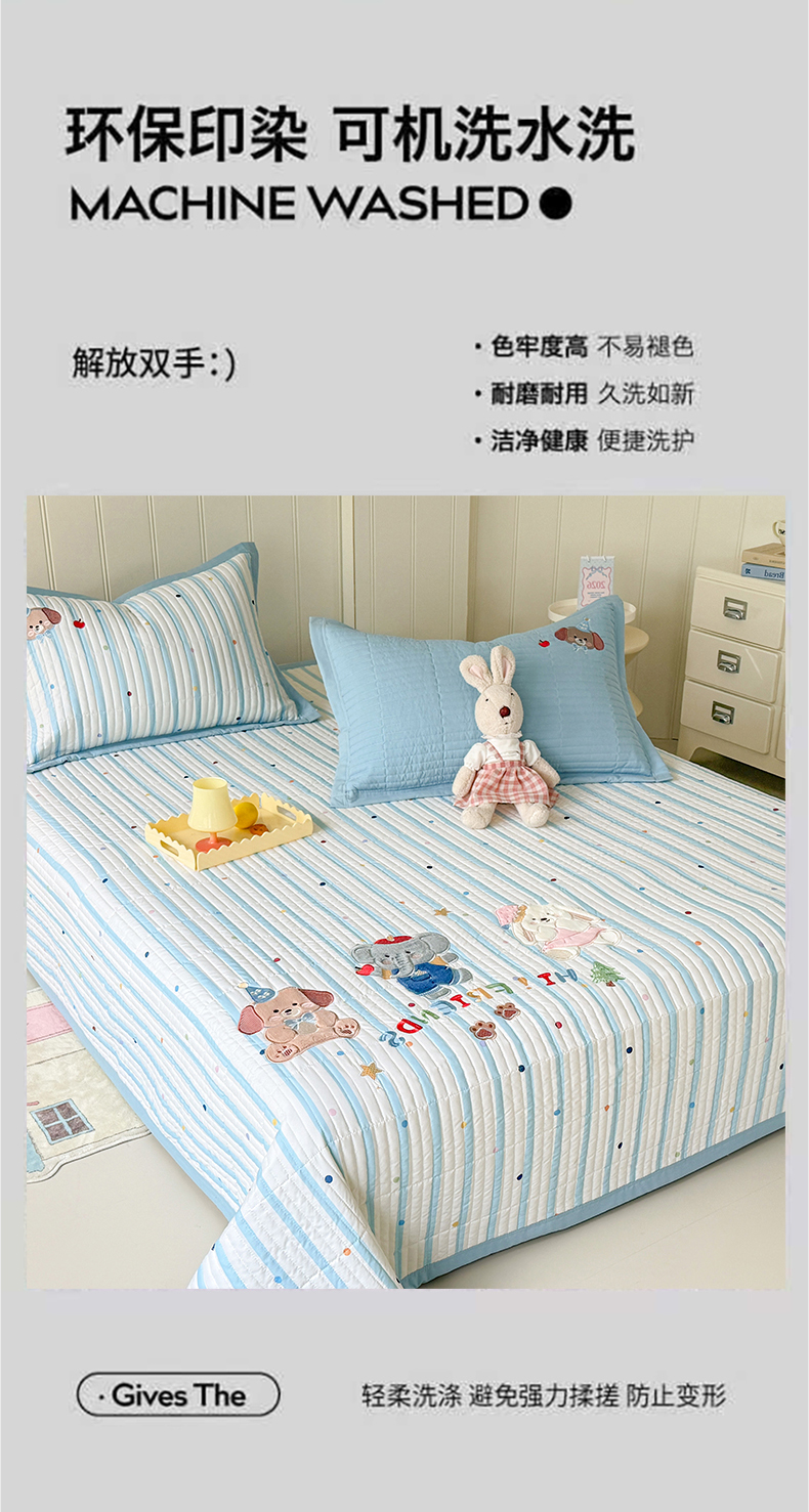 (总)优贝家纺 2026新款高克重水洗棉云感棉印+贴布绣卡通床盖夹棉软席三件套,组合图仅供展示,萌犬乐园,萌萌腊肠狗,木马小团花,甜美兔兔,熊熊乐园