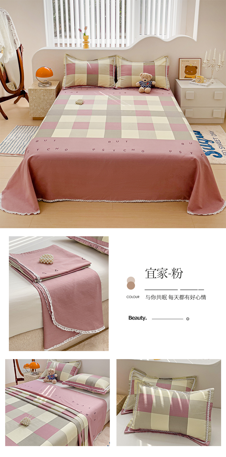 (总)梵克保罗 2026春夏原棉鱼骨棉老粗布花边印花床单软凉席席子三件套,爱心熊,翠叶,格林,花意,花韵雅姿,简彩条纹,蓝格,绿影萌龙,玫瑰,萌熊,陌上花吟,欧式风情-粉,千鸟格,柿柿如意-桔,四叶草-灰,四叶草-玉,心动-粉,心动-绿,叶韵秋眠,宜家-粉,宜家-绿,组合图仅做展示不可下单