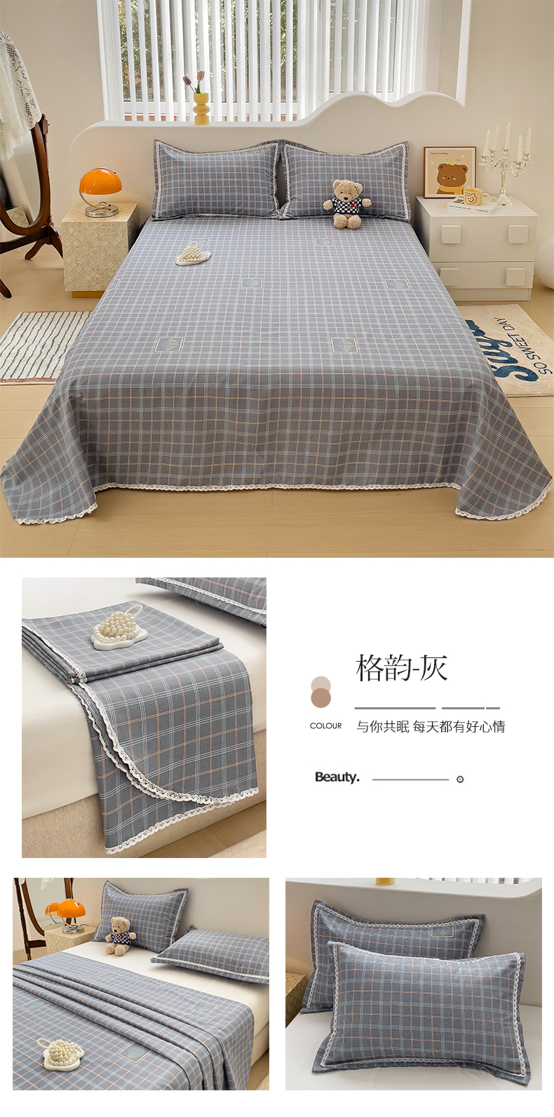 (总)梵克保罗 2026春夏原棉鱼骨棉老粗布花边印花床单软凉席席子三件套,爱心熊,翠叶,格林,花意,花韵雅姿,简彩条纹,蓝格,绿影萌龙,玫瑰,萌熊,陌上花吟,欧式风情-粉,千鸟格,柿柿如意-桔,四叶草-灰,四叶草-玉,心动-粉,心动-绿,叶韵秋眠,宜家-粉,宜家-绿,组合图仅做展示不可下单