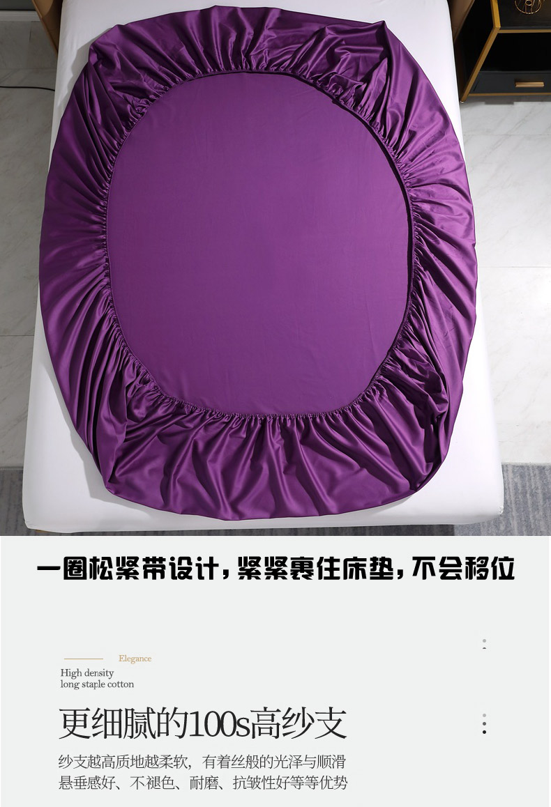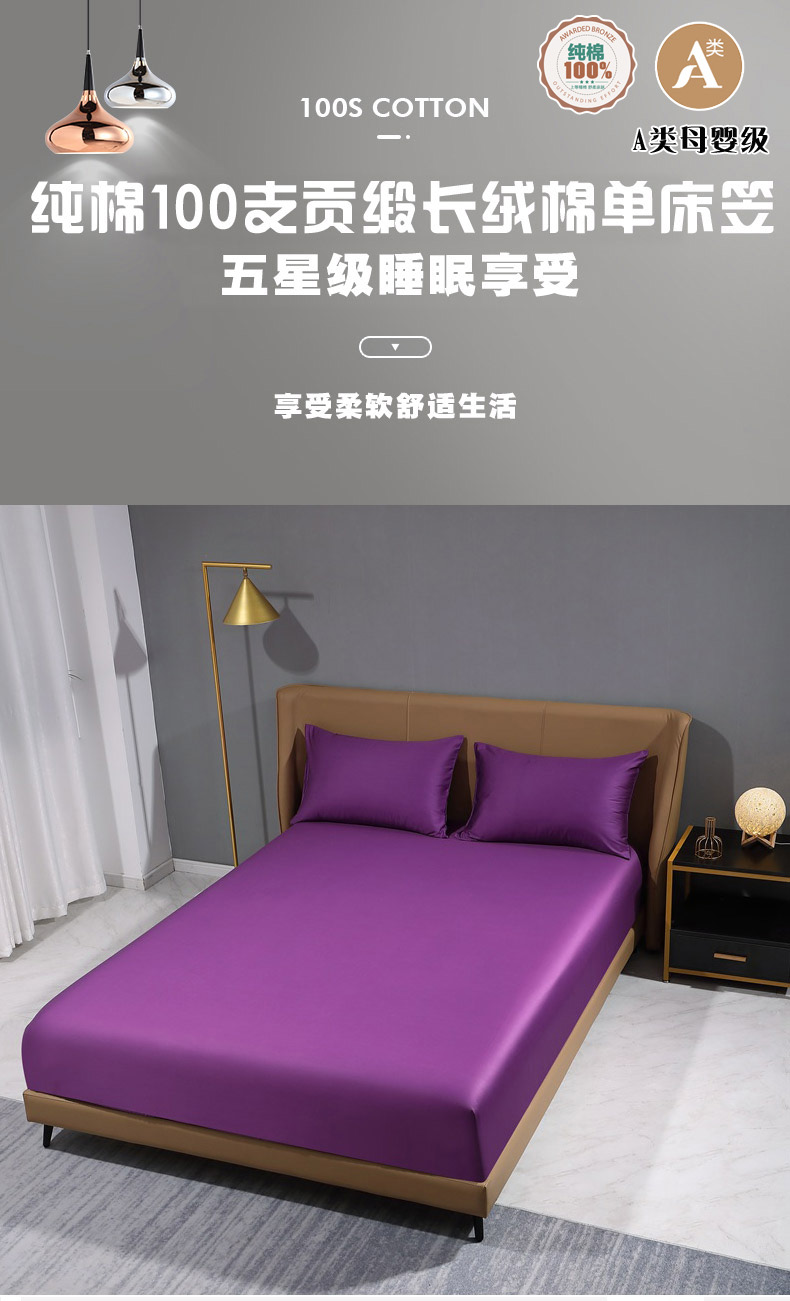 晶缦家纺 2026新全棉A类纯棉100支贡缎长绒棉纯色多规格单床笠 床笠单件-绮云系列 绮云-罗兰紫