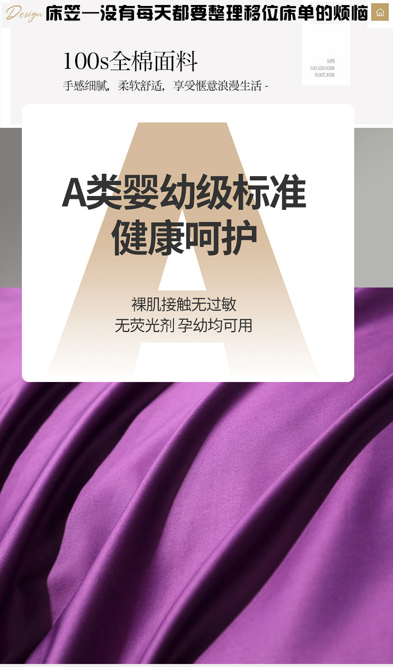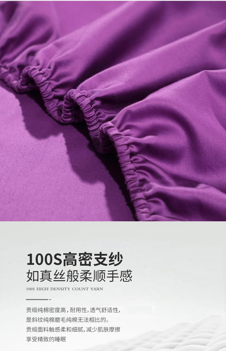 • 91家纺网 家纺一手货源 找家纺 晶缦家纺 2026新全棉A类纯棉100支贡缎长绒棉纯色多规格单床笠 床笠单件-绮云系列 绮云-罗兰紫
