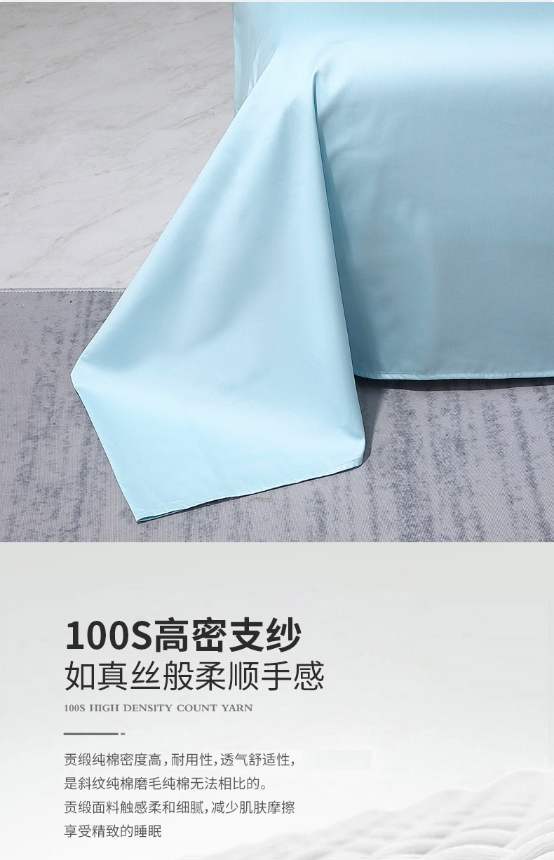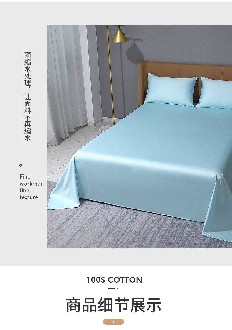 • 91家纺网 家纺一手货源 找家纺 晶缦家纺 2026新全棉A类纯棉100支贡缎长绒棉纯色多规格单床单 床单单件-绮云系列 绮云-浅天蓝