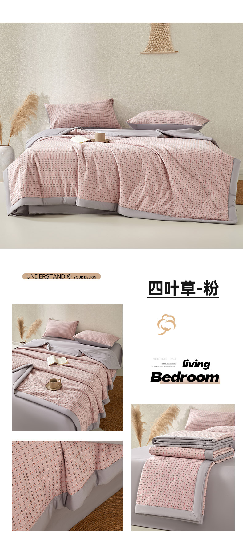 (总)吾诺家居 2026春夏新款全棉大提花棉花夏被夏凉被空调被-四叶草系列,组合图仅供展示不可下单,四叶草-粉,四叶草-兰,四叶草-绿,四叶草-驼