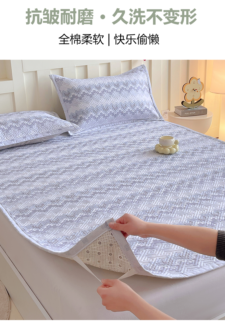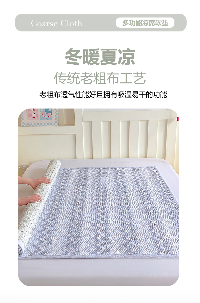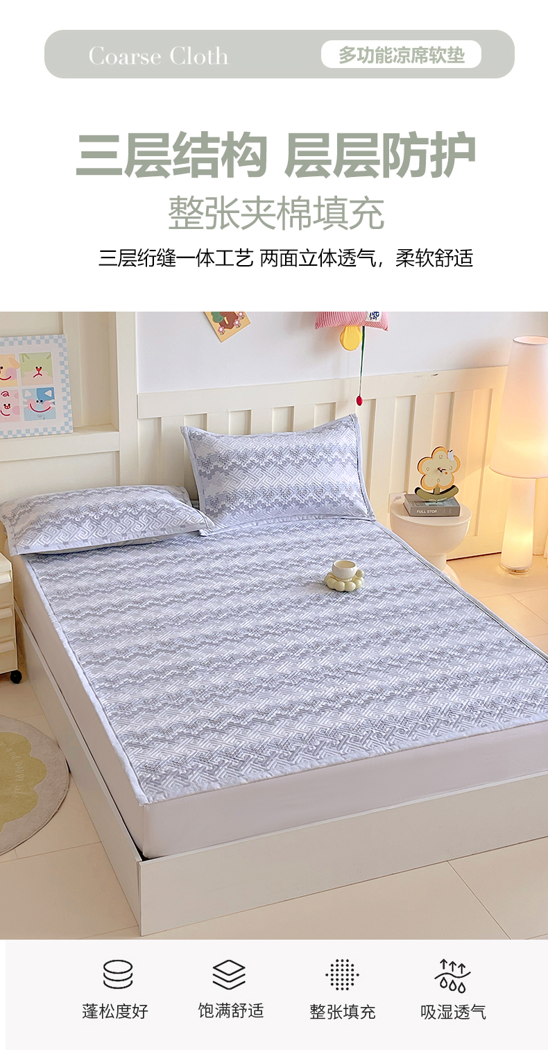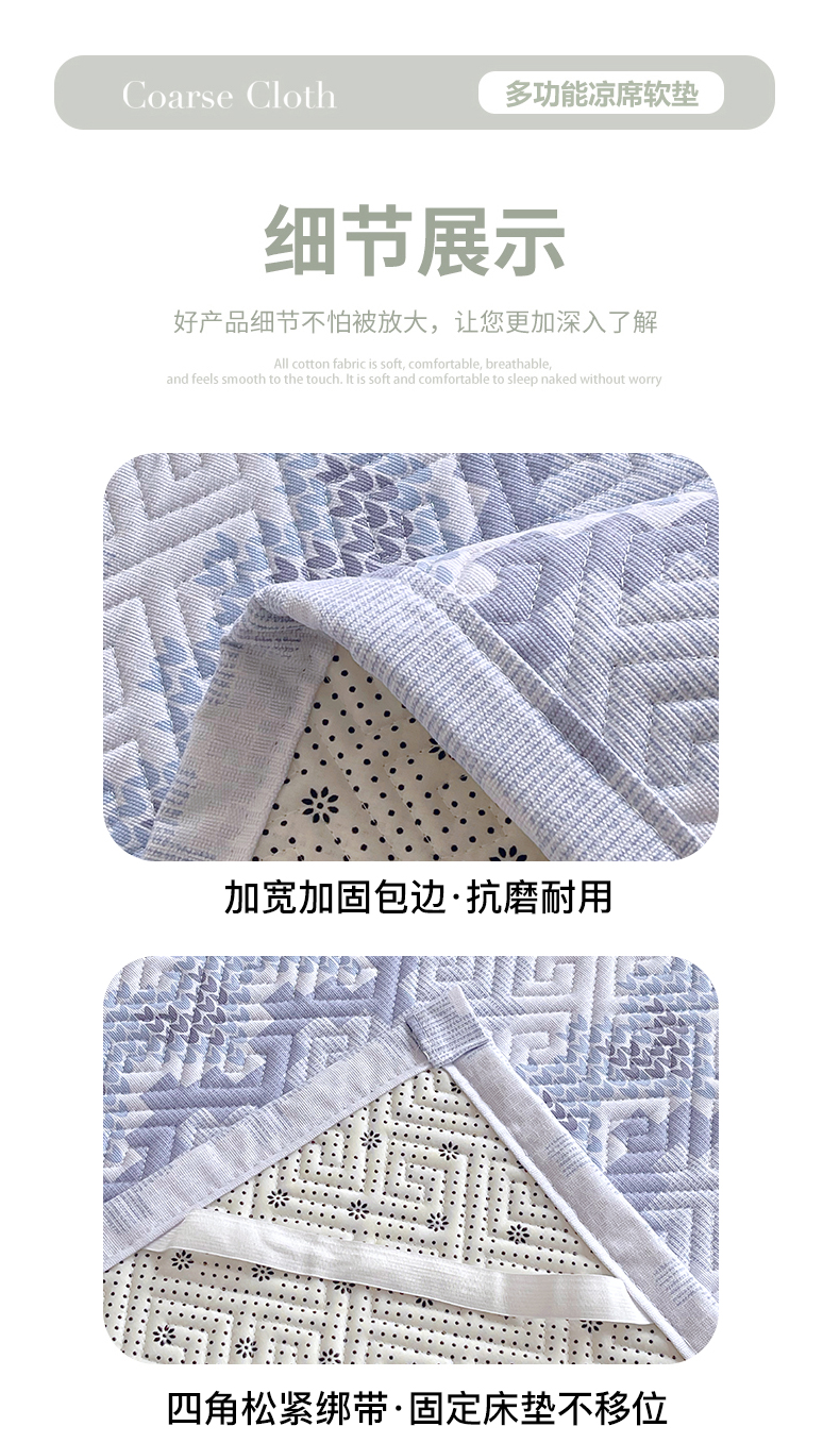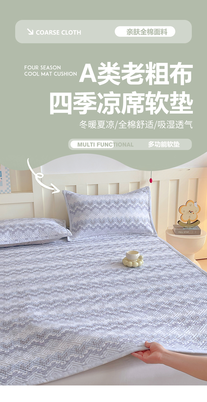 当前位置: 91家纺网 > 商品网购 > 床上用品 > 凉席 > 其他凉席 > 金鑫汇家纺 2026春夏新款成人床新花型老粗布夹棉床盖软凉席席子可以机洗 燕南飞-蓝