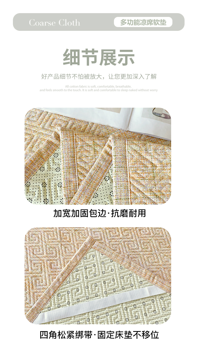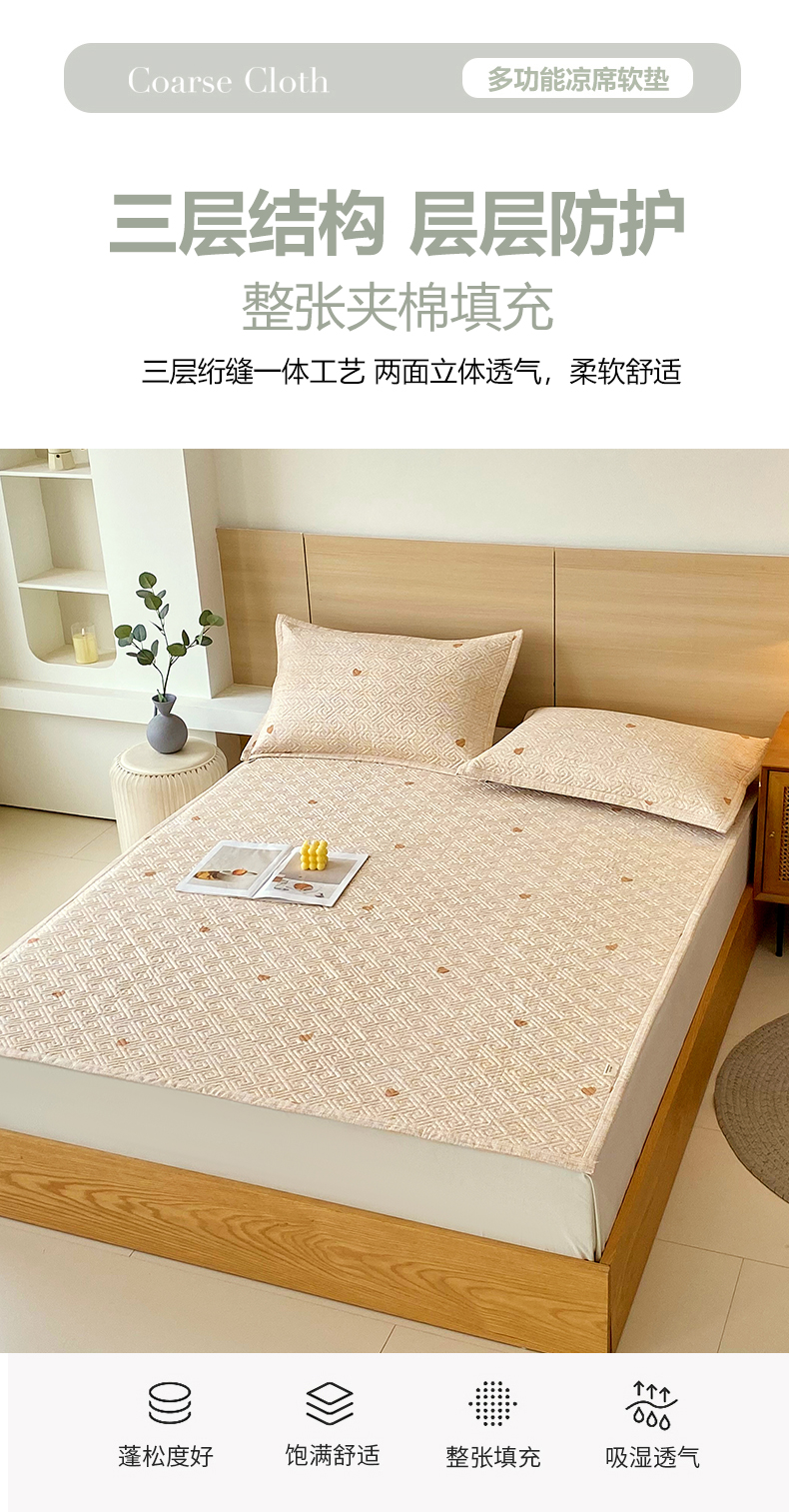 当前位置: 91家纺网 > 商品网购 > 床上用品 > 凉席 > 其他凉席 > 金鑫汇家纺 2026春夏新款成人床新花型老粗布夹棉床盖软凉席席子可以机洗 心之恋