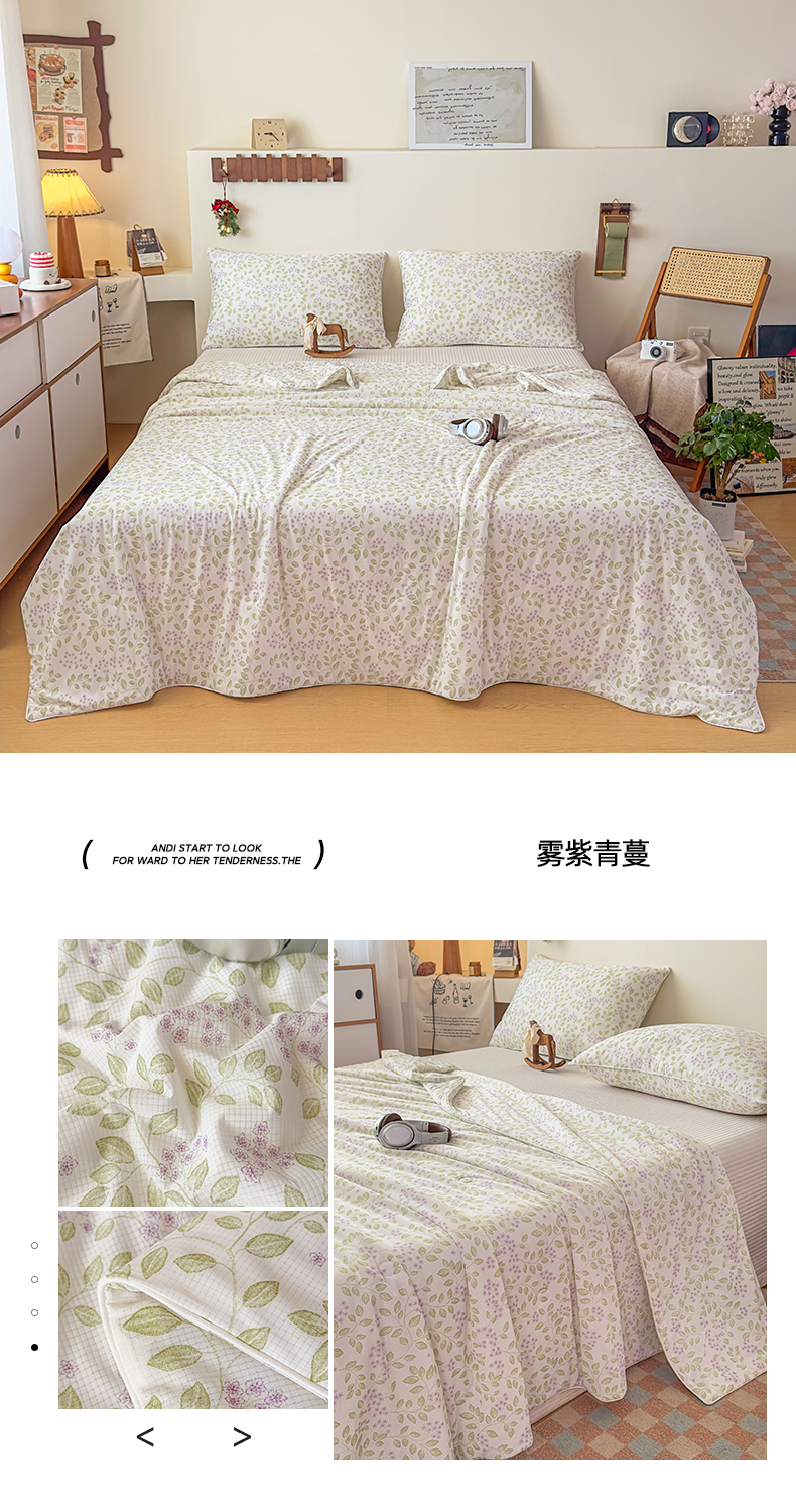 • 91家纺网 家纺一手货源 找家纺 帕拉美拉 2026新款A类(聚乳酸)提花凉感丝三件套夏被 雾紫青蔓