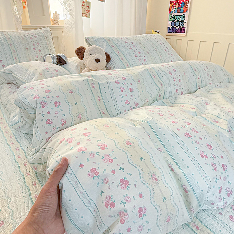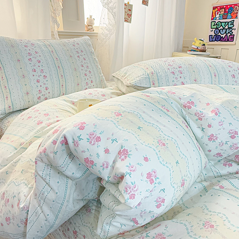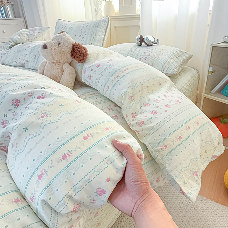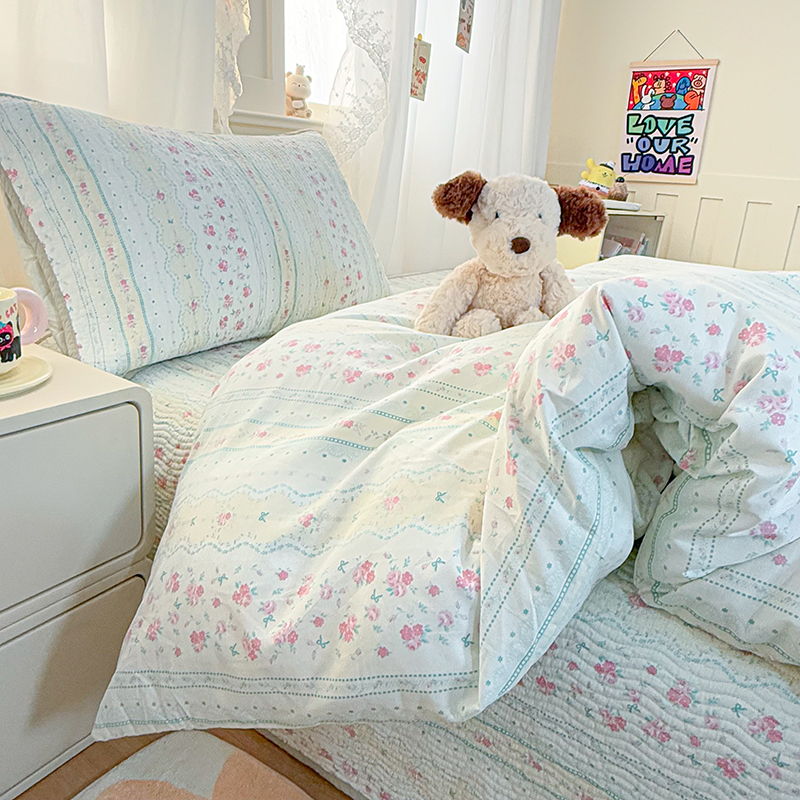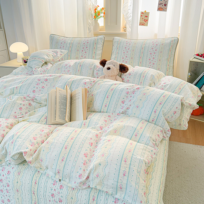 商品名称:淑女公社家纺 2026春夏新款高温砂洗床盖款纯棉四件套床盖被套单品单件 喵小姐