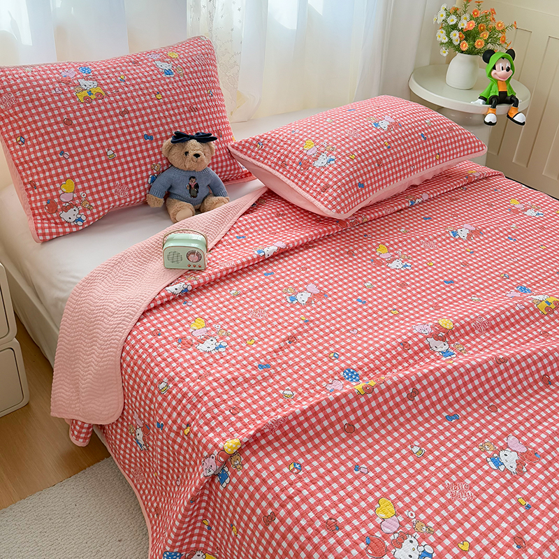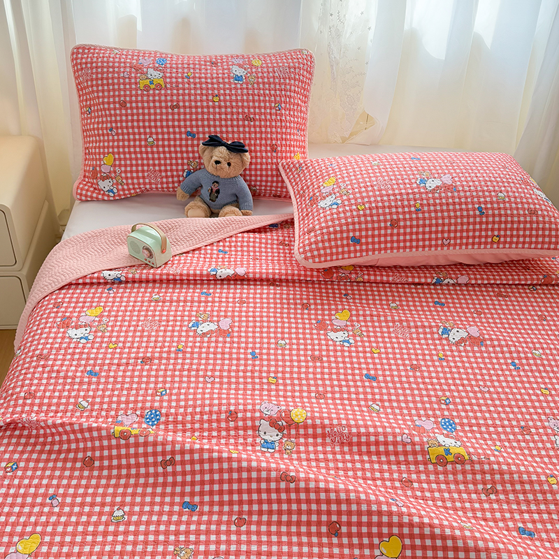 商品名称:(总)淑女公社家纺 2026新款高温砂洗纯棉床盖款正版三丽鸥KT猫四件套床盖被套单件单品