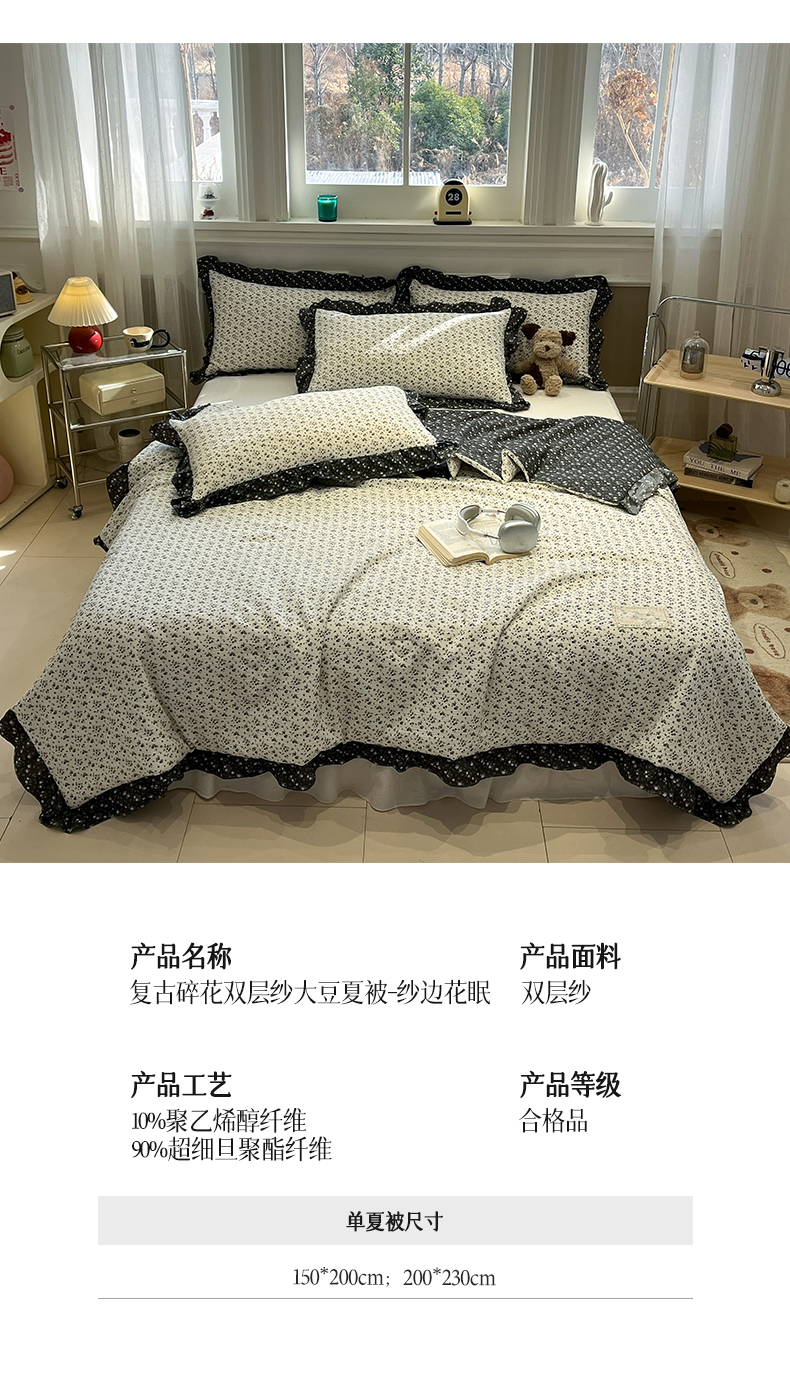 商品名称:一加一 2026新款复古碎花双层纱大豆夏被夏凉被空调被-纱边花眠 暗香