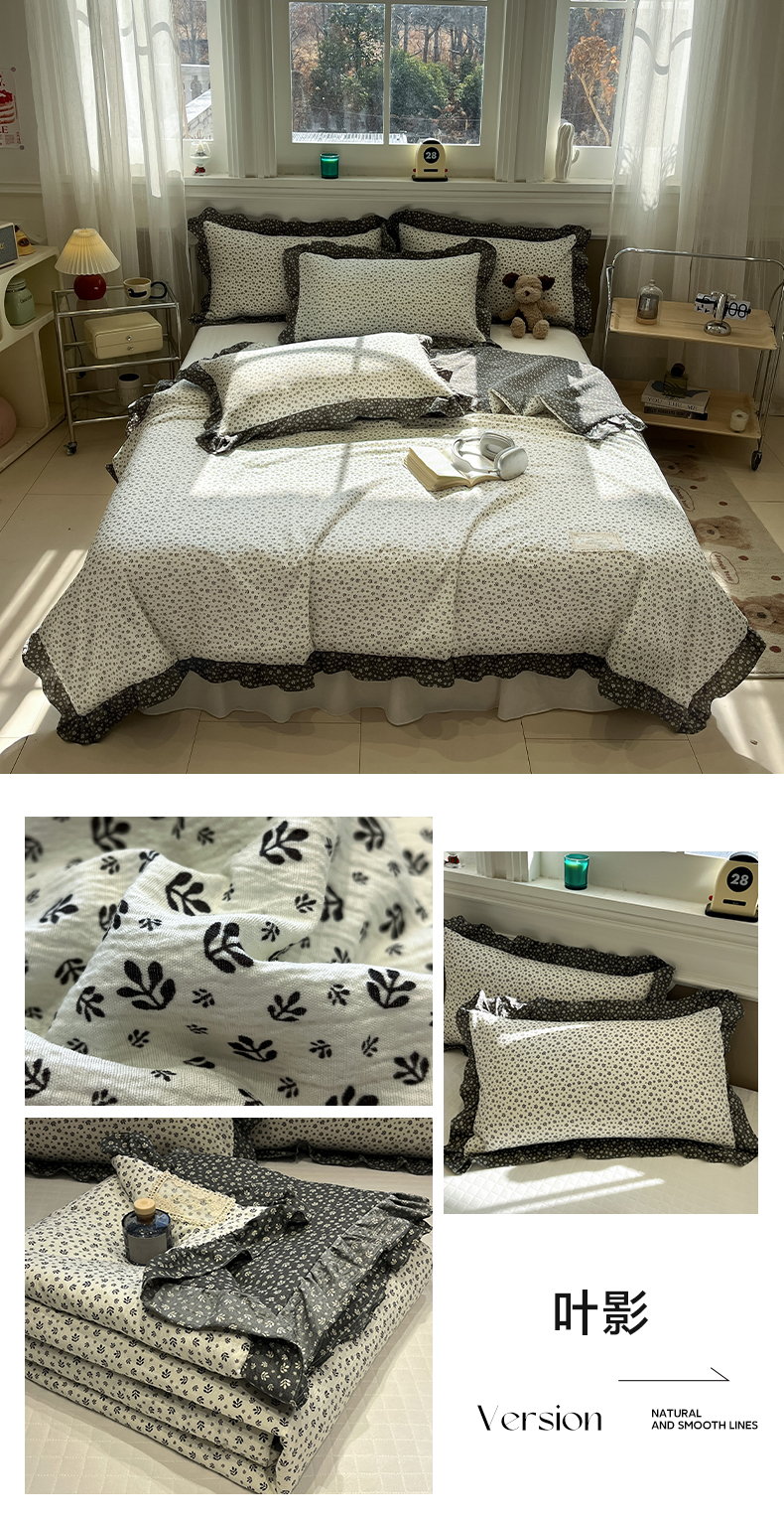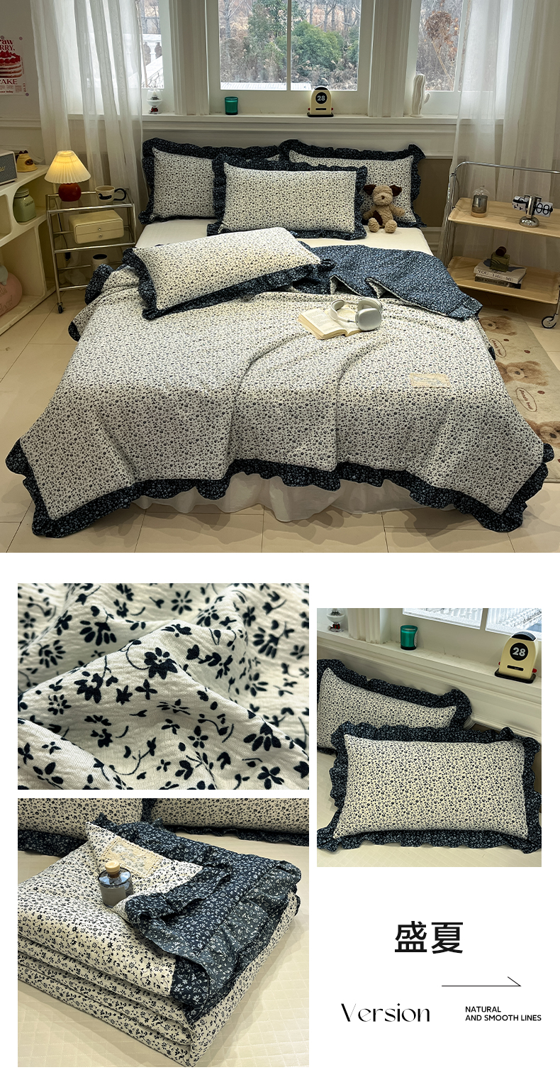 (总)一加一 2026新款复古碎花双层纱大豆夏被夏凉被空调被-纱边花眠,暗香,芬芳,花团锦簇,盛夏,叶影,绽放