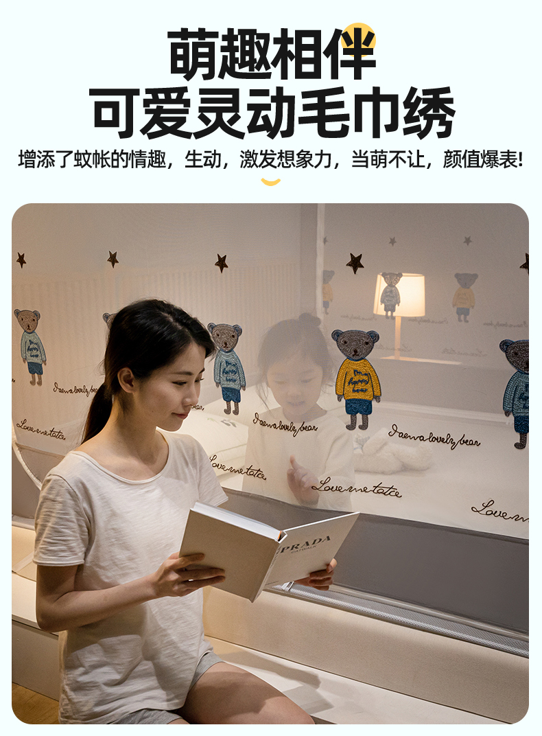 (总)飞轮海蚊帐 2025新款三开门方顶花边防摔遮光蚊帐-Z39,你好蛙,不许动,快乐家族,生活有趣,熊猫宝