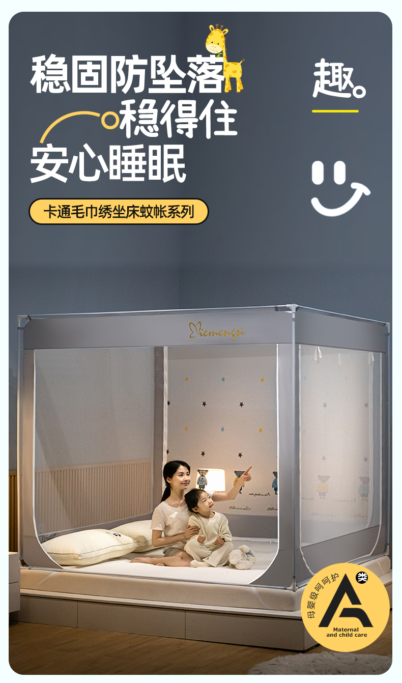 (总)飞轮海蚊帐 2026新款防蚊坐床式防滑蚊帐-Z70,波尔多,几何半圆,箭羽,开心熊