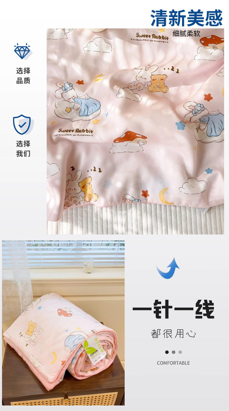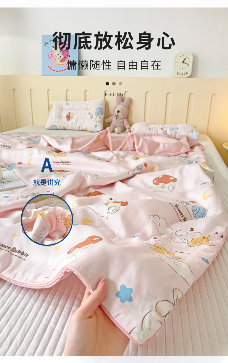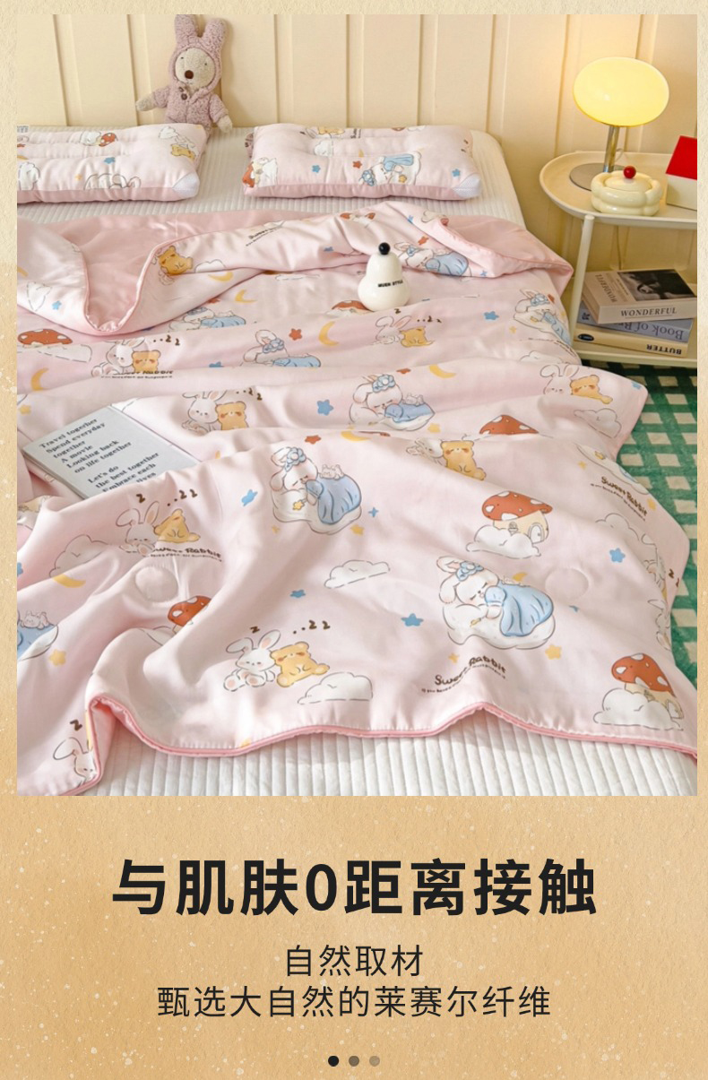 商品名称:十九色 2026春夏新款50莱赛尔卡通印花儿童夏被夏凉被空调被 瞌睡兔