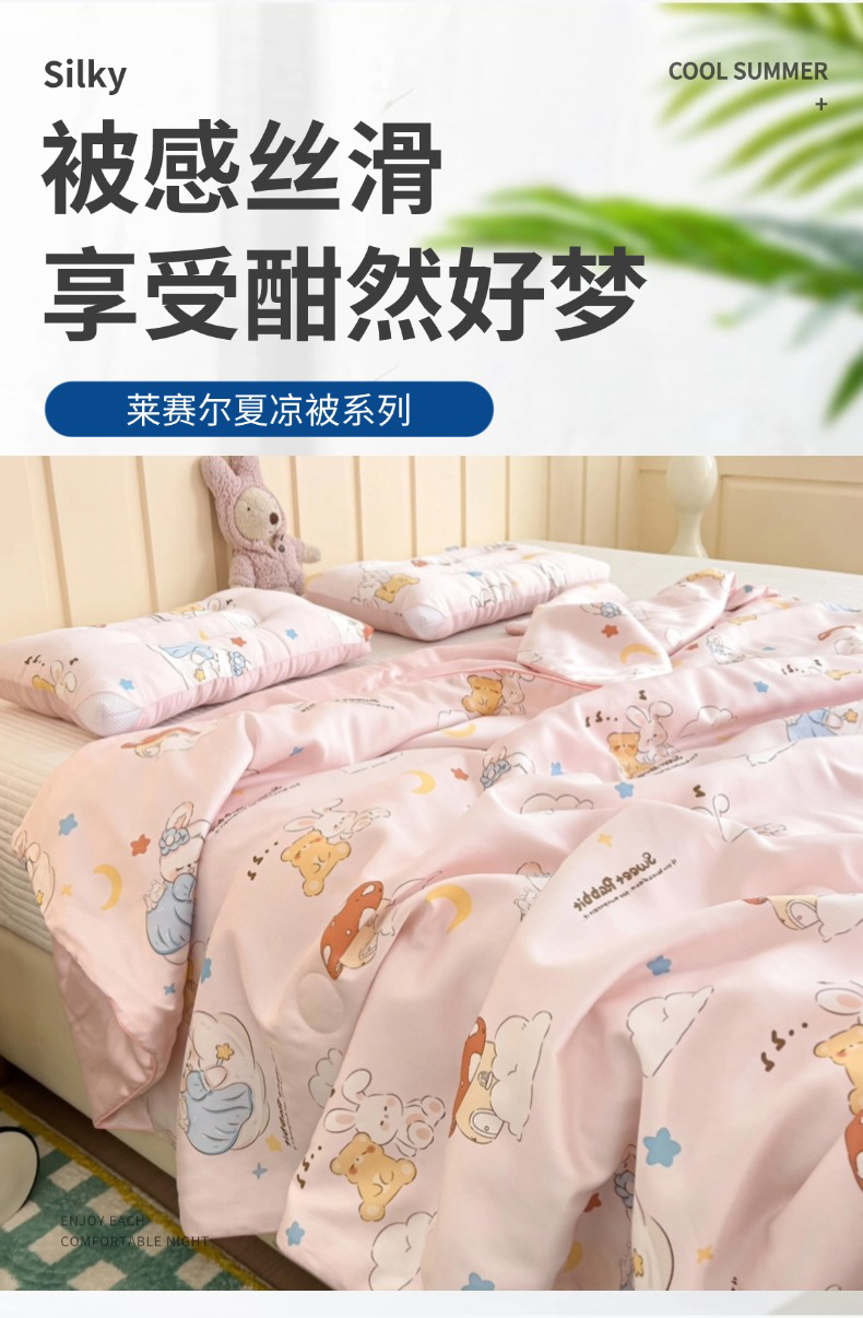 十九色 2026春夏新款50莱赛尔卡通印花儿童夏被夏凉被空调被 瞌睡兔