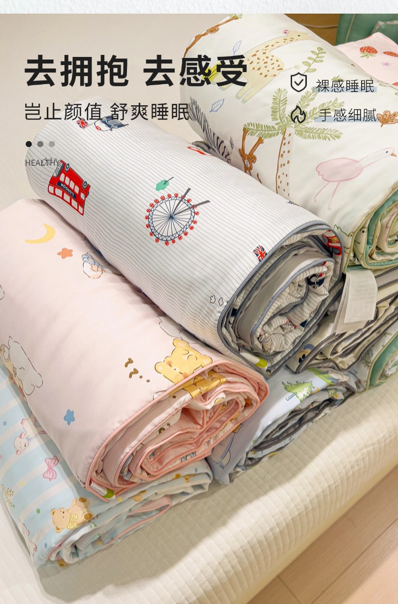 (总)十九色 2026春夏新款50莱赛尔卡通印花儿童夏被夏凉被空调被,春日玩伴,北极熊,大白鹅,大草原,瞌睡兔,蓝莓蛋糕,领结熊,伦敦巴士,汽车家族,甜心草莓,星花小马,许愿瓶,组合图仅供展示不可下单