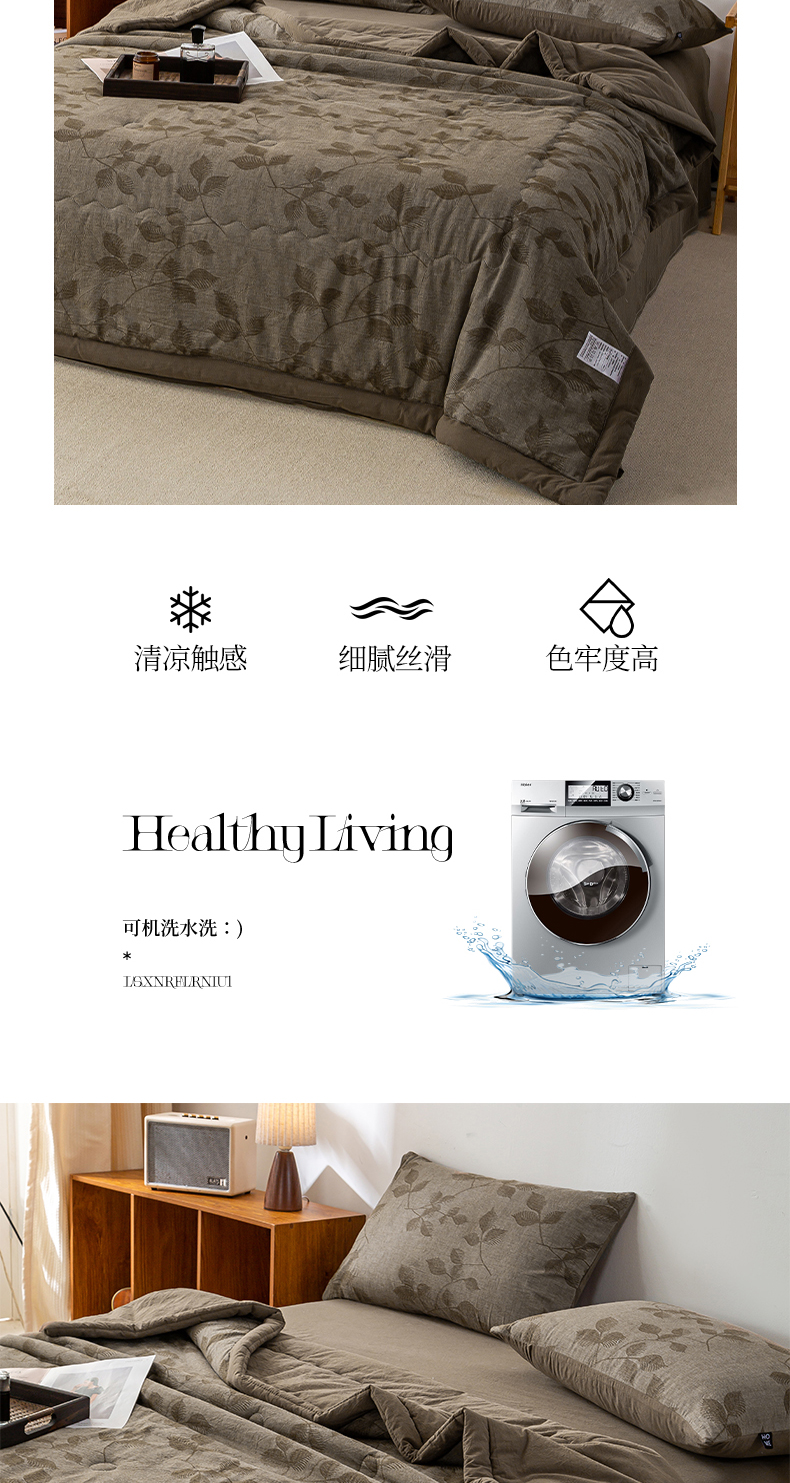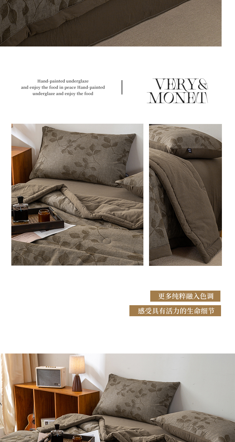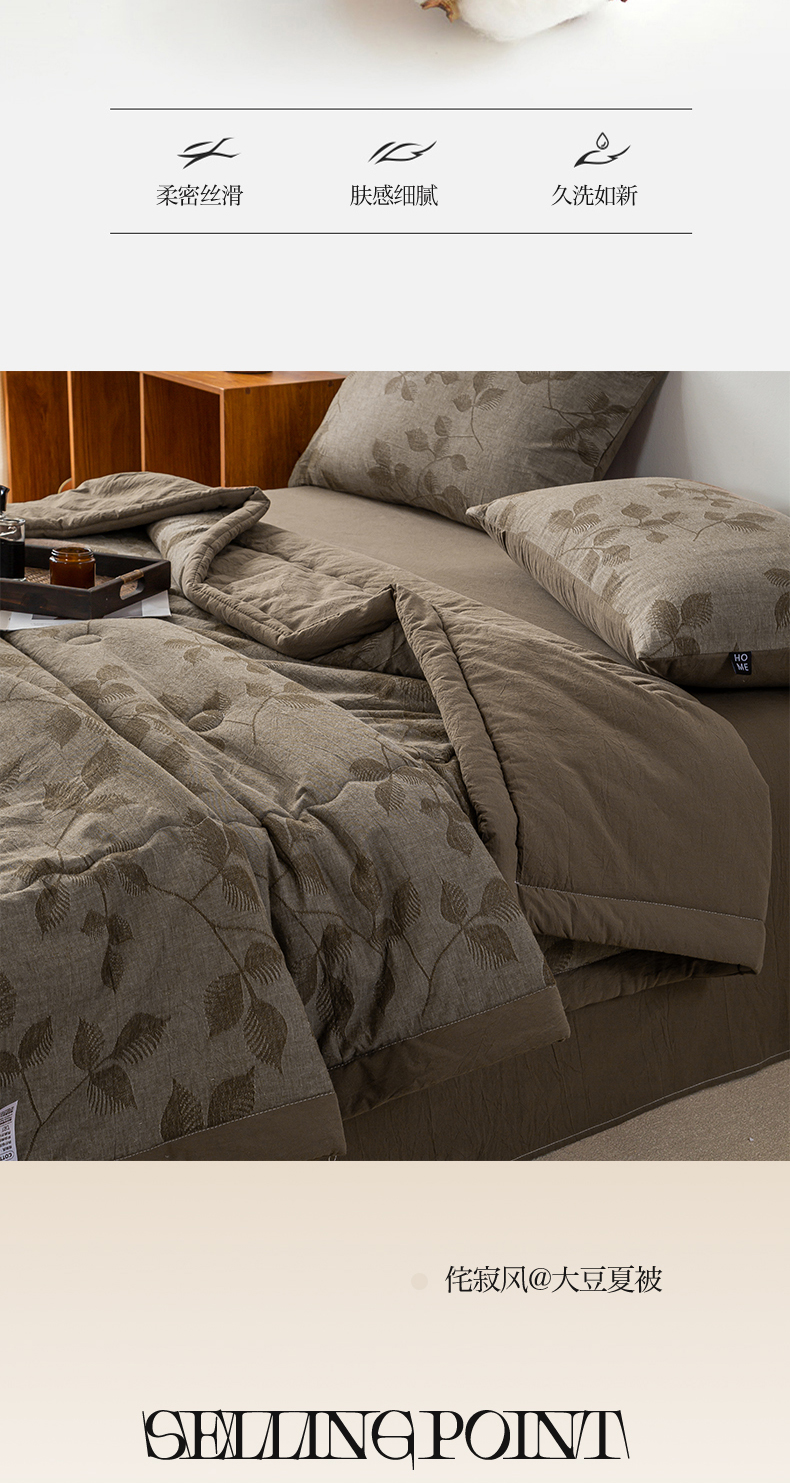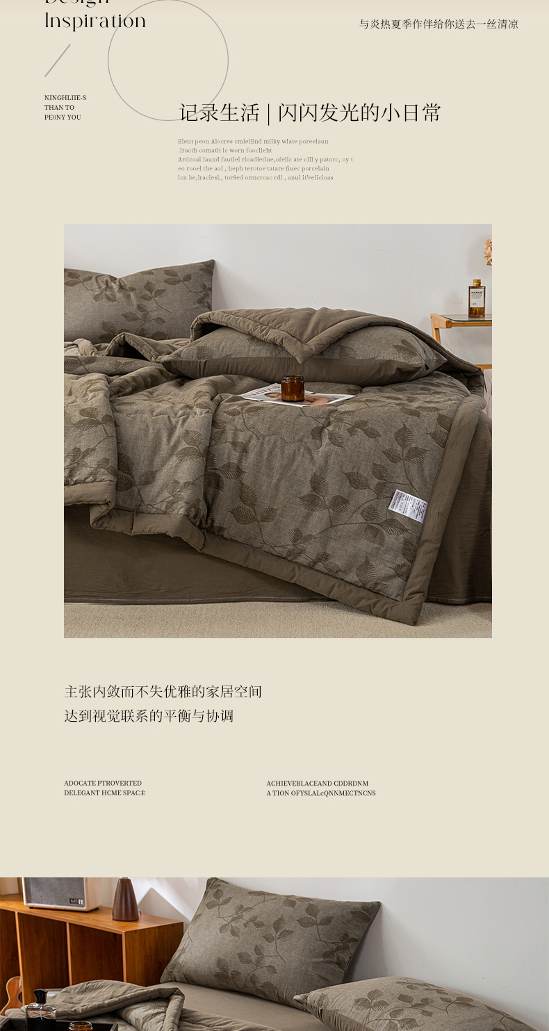 • 91家纺网 家纺一手货源 找家纺 恋人优选 2026新款樱花叶全棉提花夏被空调被 樱花叶-咖