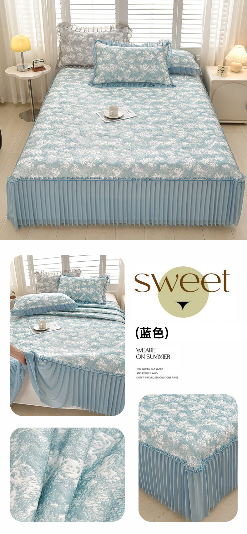 (总)畅畅家纺 2026春夏新款聚乙烯中分子双面提花高克重凉感冰感凉豆豆床裙三件套-经典玫瑰,经典玫瑰-粉,经典玫瑰-灰,经典玫瑰-蓝,经典玫瑰-绿