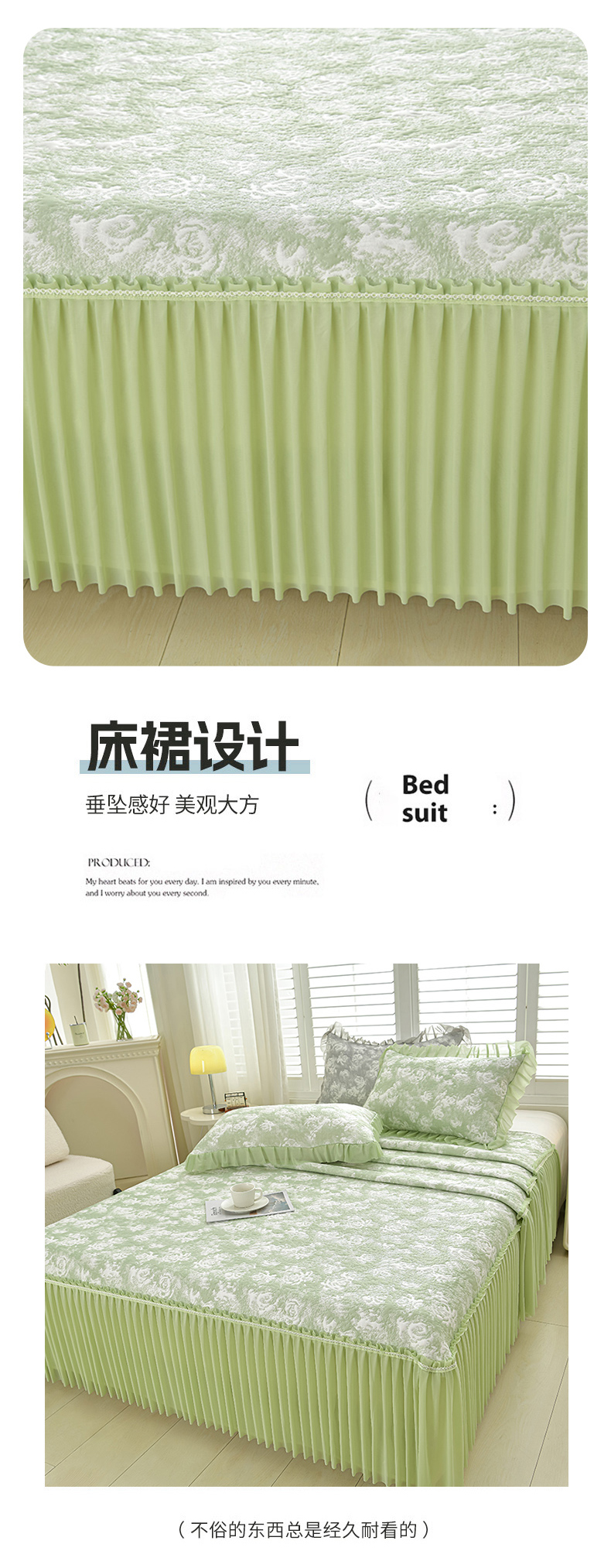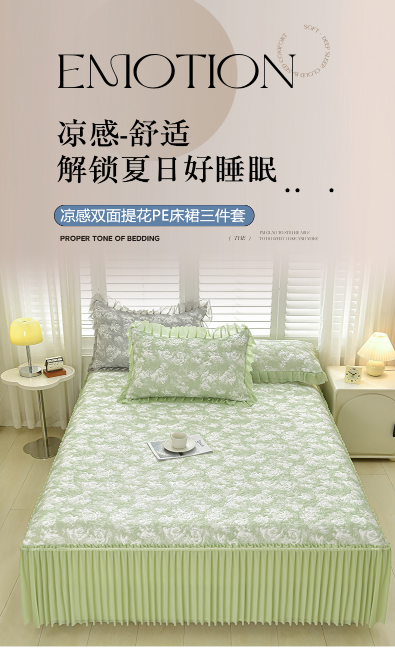 商品名称:畅畅家纺 2026春夏新款聚乙烯中分子双面提花高克重凉感冰感凉豆豆床裙三件套-经典玫瑰 经典玫瑰-绿