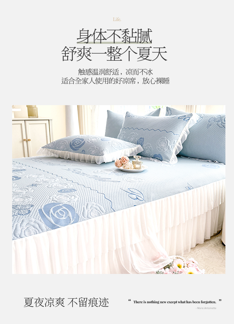 (总)优贝家纺 2026新款A类凉感豆豆席三件套床裙款软席子,蝶舞-清新绿,花韵-天蓝,花韵-粉玉,花韵-清新绿,花韵-山灰,蝶舞-粉玉,蝶舞-山灰,蝶舞-天蓝