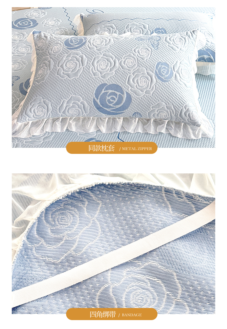 优贝家纺 2026新款A类凉感豆豆席三件套床裙款软席子 花韵-粉玉