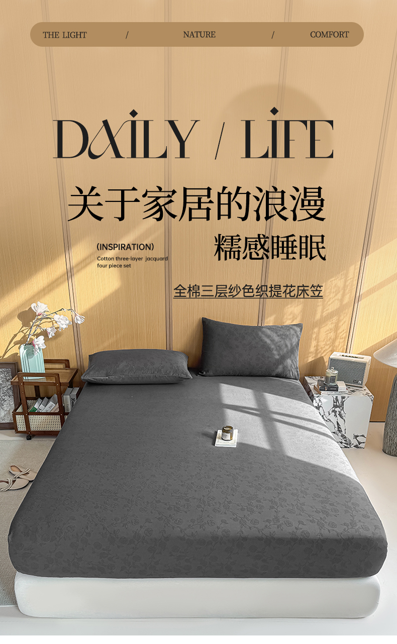 • 91家纺网 家纺一手货源 找家纺 (总)灰鲸 2026新款全棉纯棉三层纱色织提花床笠单品床笠床笠单件,花影-可可奶咖,花影-摩卡,花影-素墨,花影-雾灰,花影-杏仁奶霜,浅忆-可可奶咖,浅忆-摩卡,浅忆-素墨,浅忆-杏仁奶霜,蔷薇-可可奶咖,蔷薇-摩卡,蔷薇-素墨,蔷薇-雾灰,蔷薇-杏仁奶霜,影韵-可可奶咖,影韵-摩卡,影韵-素墨,影韵-雾灰,影韵-杏仁奶霜