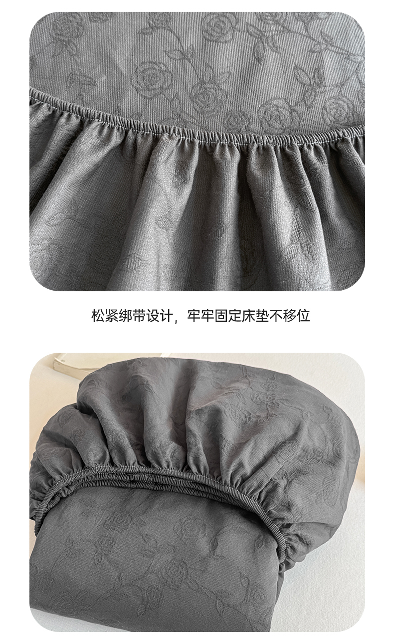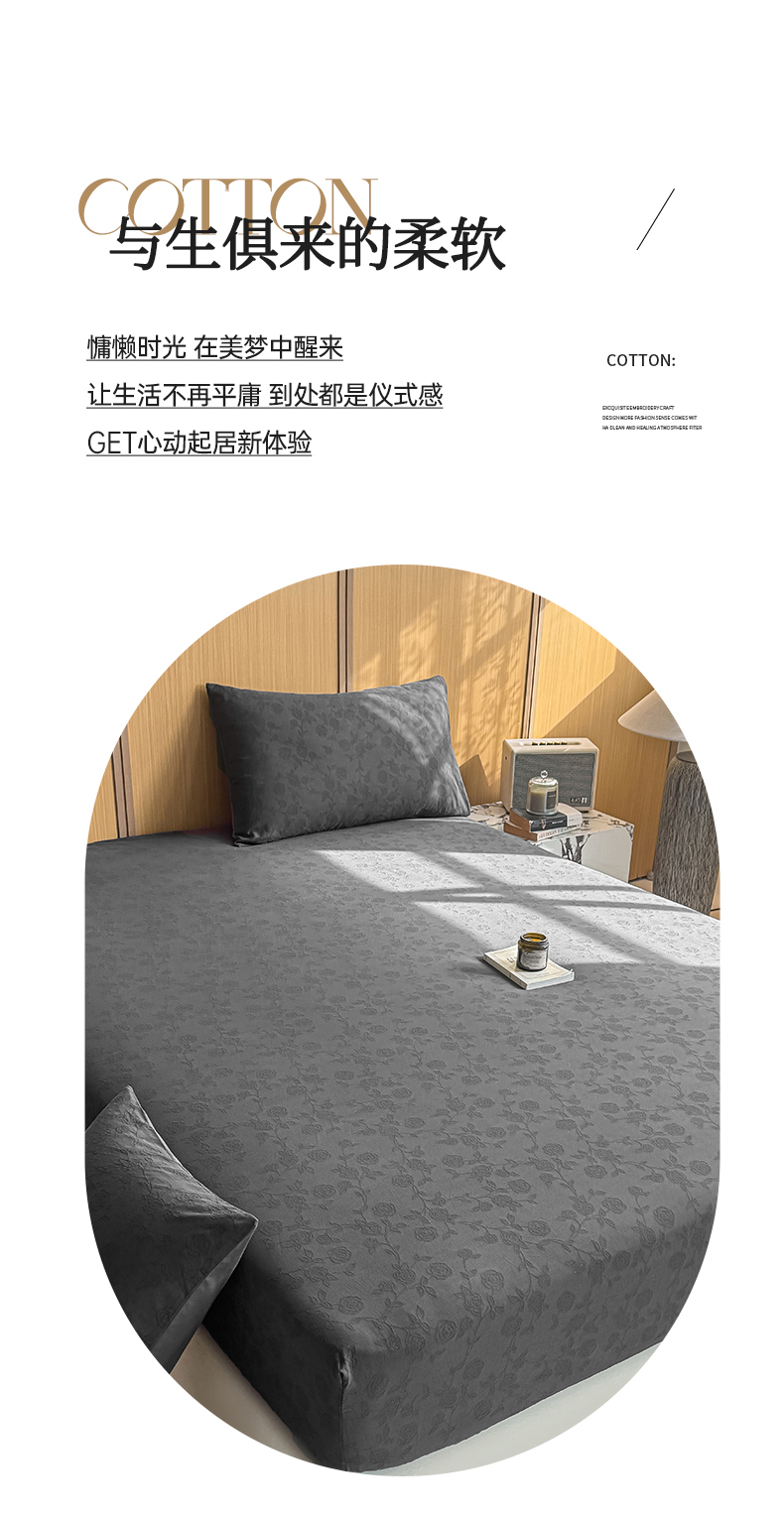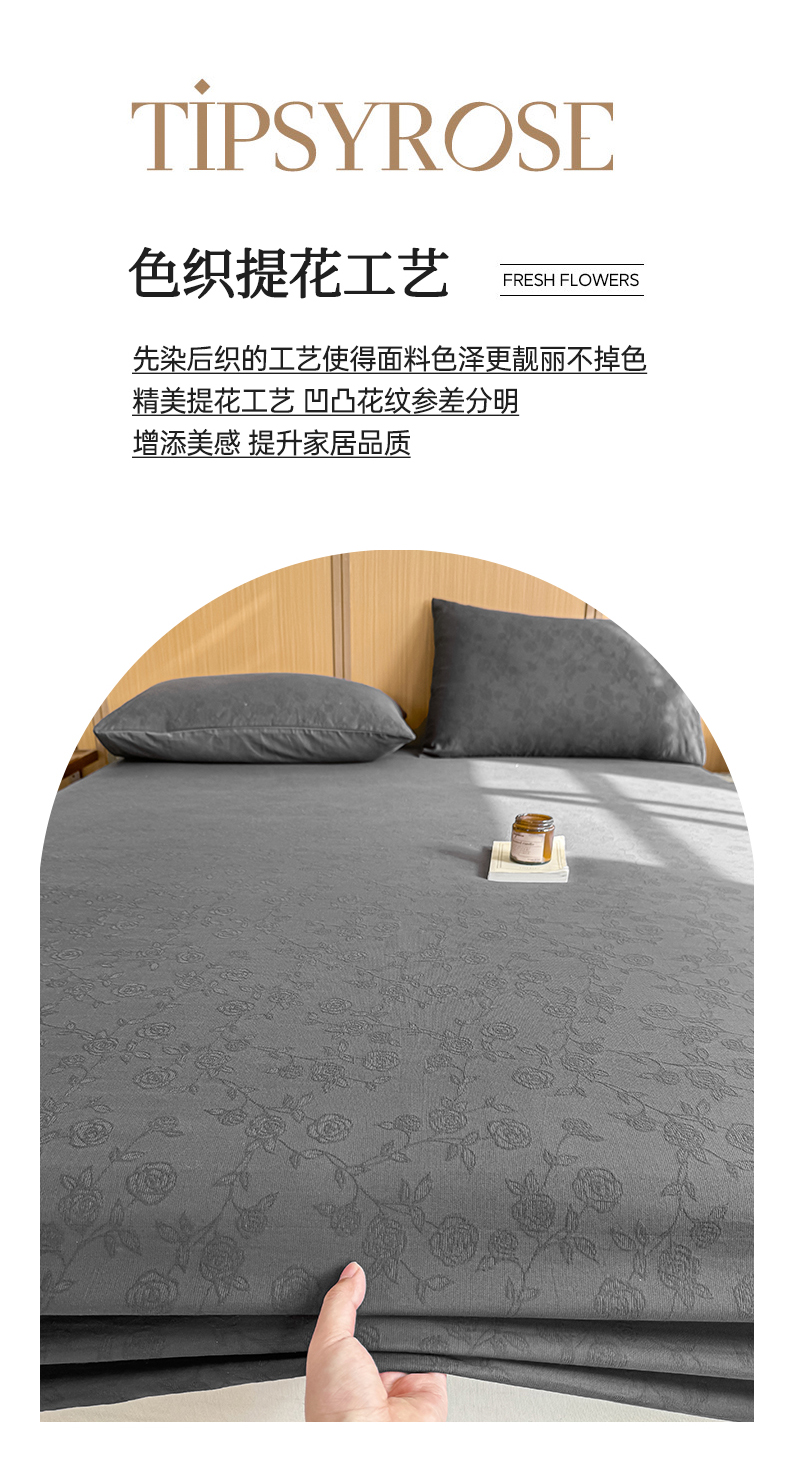 灰鲸 2026新款全棉纯棉三层纱色织提花床笠单品床笠床笠单件 蔷薇-素墨