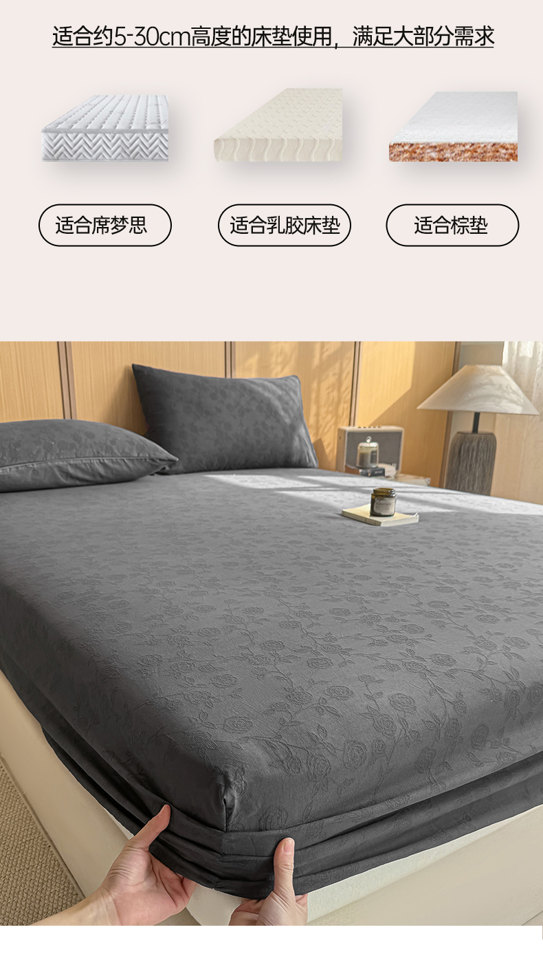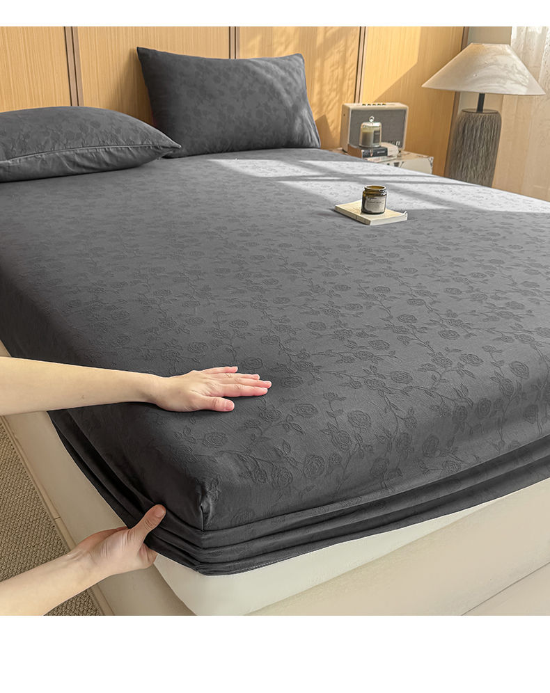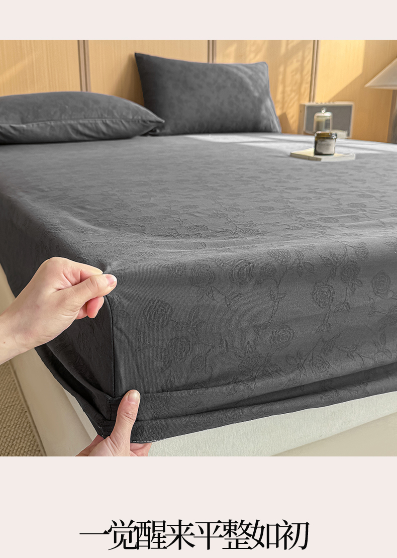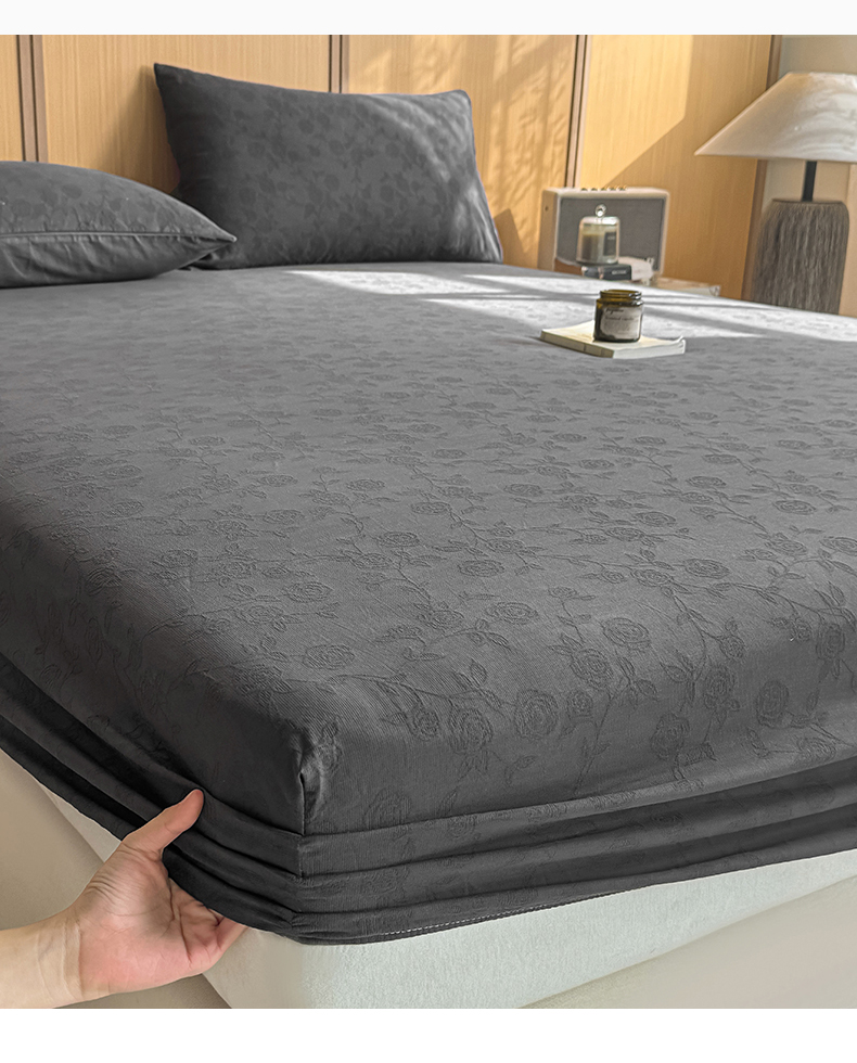 灰鲸 2026新款全棉纯棉三层纱色织提花床笠单品床笠床笠单件 蔷薇-素墨