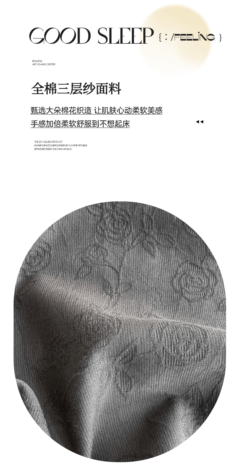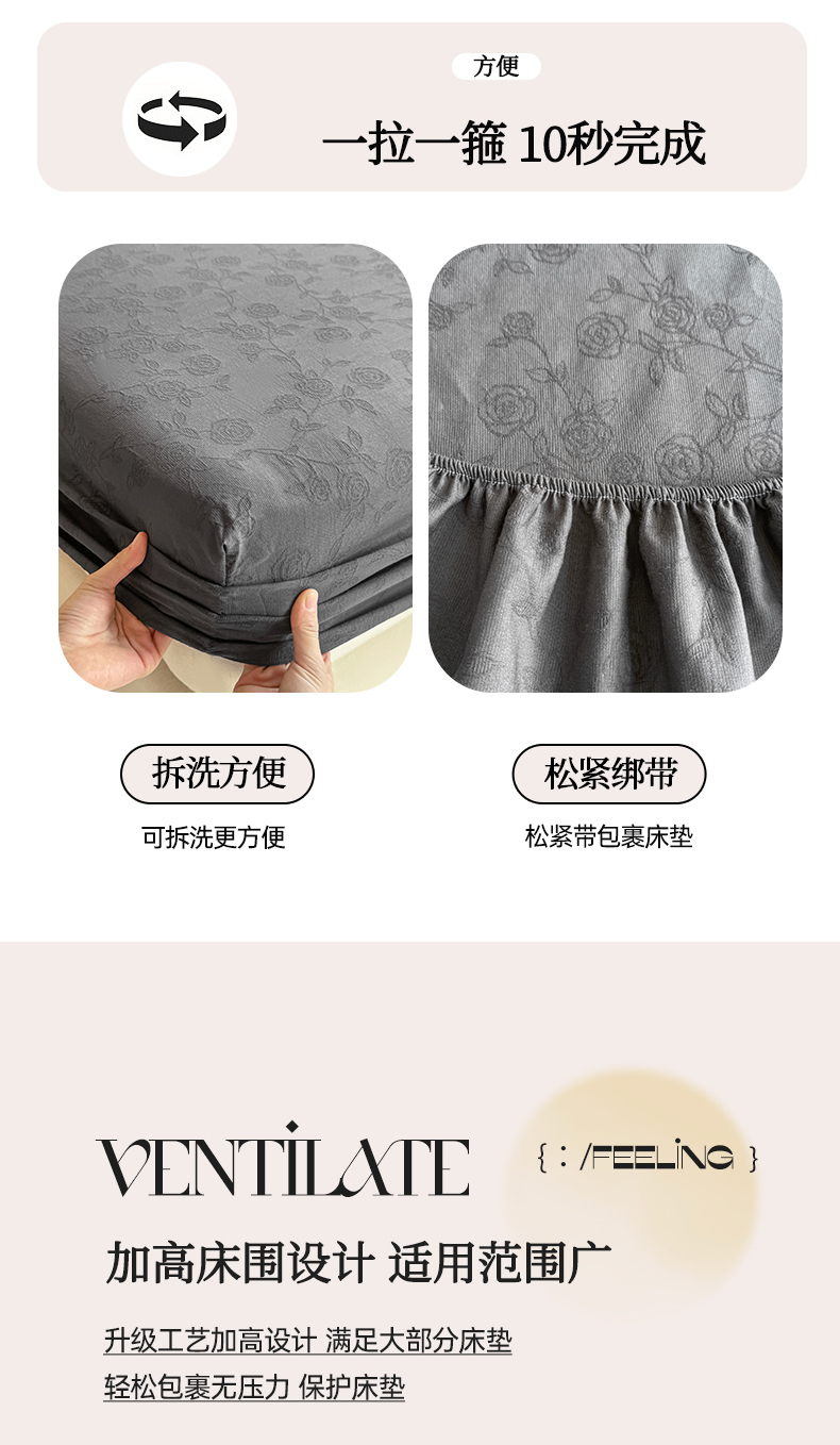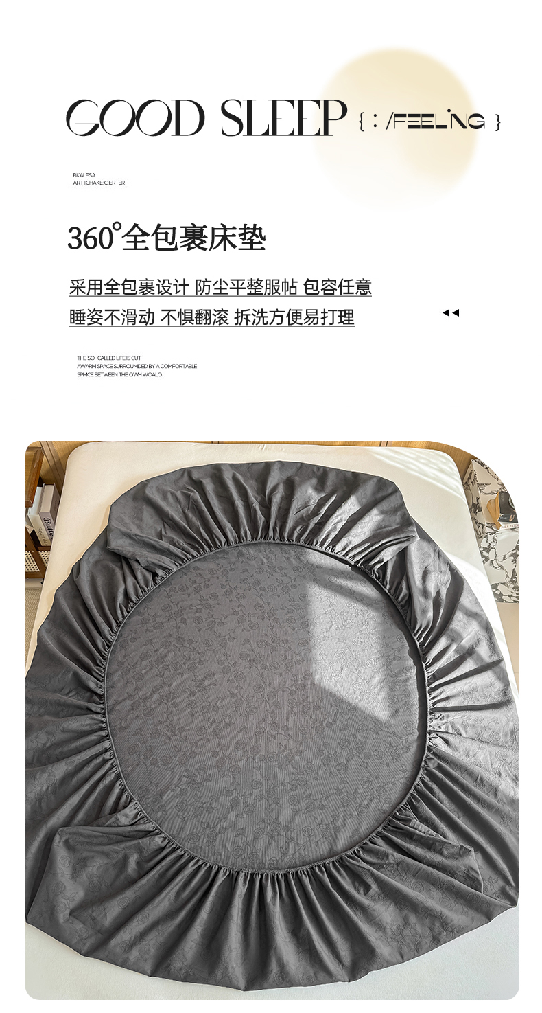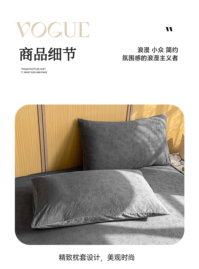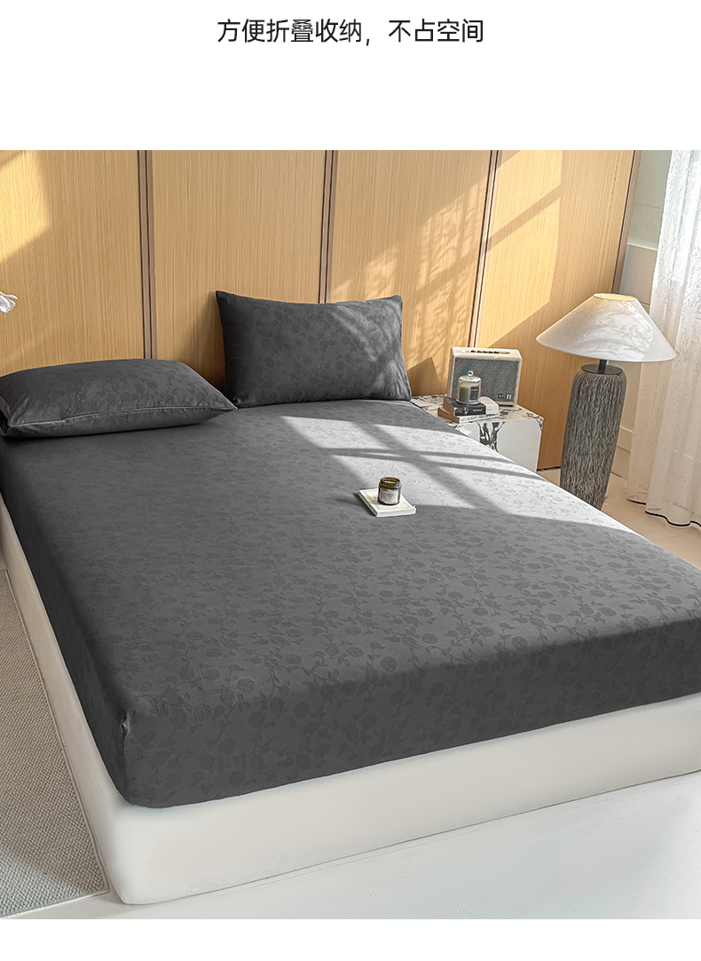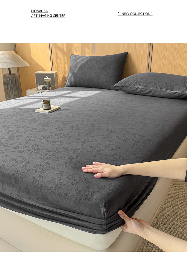 • 91家纺网 家纺一手货源 找家纺 灰鲸 2026新款全棉纯棉三层纱色织提花床笠单品床笠床笠单件 蔷薇-素墨