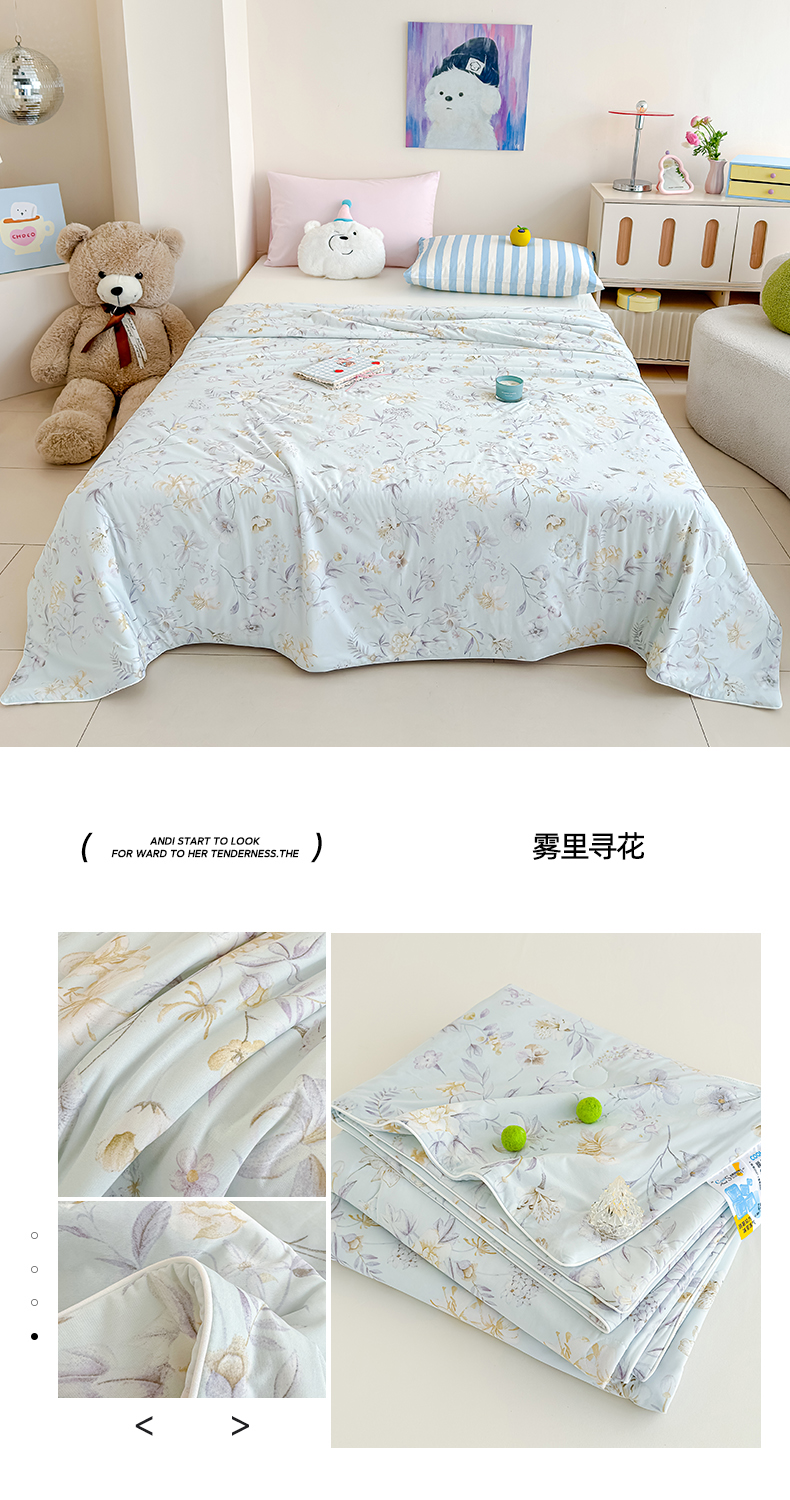 商品名称:芯恋家居 2026年新款小冰川凉感夏被冰皮凉感印花夏被凉感丝夏被(四周踩棉工艺) 雾里寻花