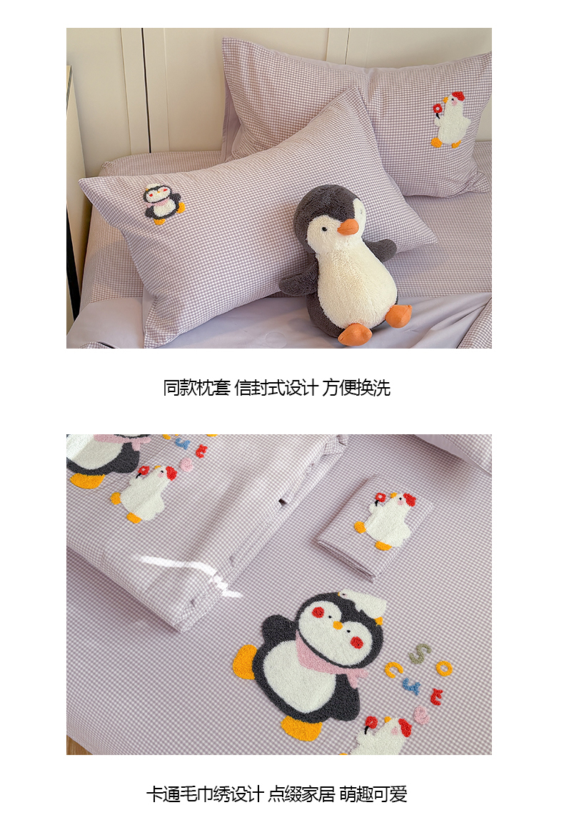 • 91家纺网 家纺一手货源 找家纺 (总)暖生活 2026新款全棉纯棉色织水洗棉毛巾绣床笠三件套,组合图仅做展示不可下单,KT日记,蓝鲸梦,墨镜小狗,下雨天,小企鹅,阅读星人