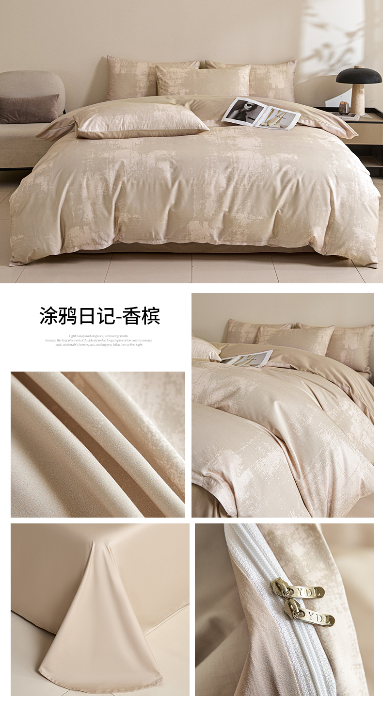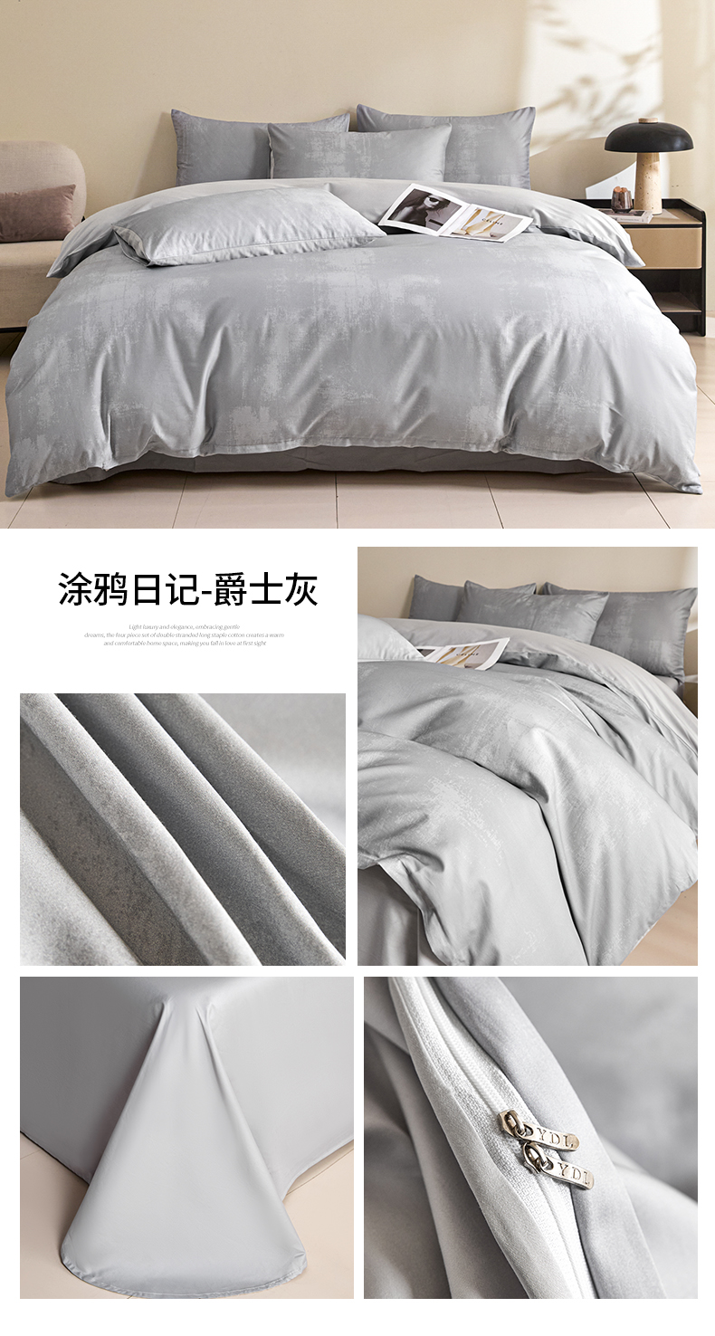 (总)新方向 【控价 提供买家秀】2026新款 数码印花50s双股全棉贡缎长绒棉四件套-涂鸦日记(控价 标准288元 加大308元)