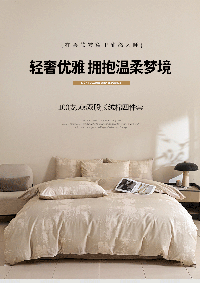 (总)新方向 【控价 提供买家秀】2026新款数码印花50s双股全棉贡缎长绒棉四件套-约定,约定-蔷薇粉,约定-香槟,约定-星月蓝