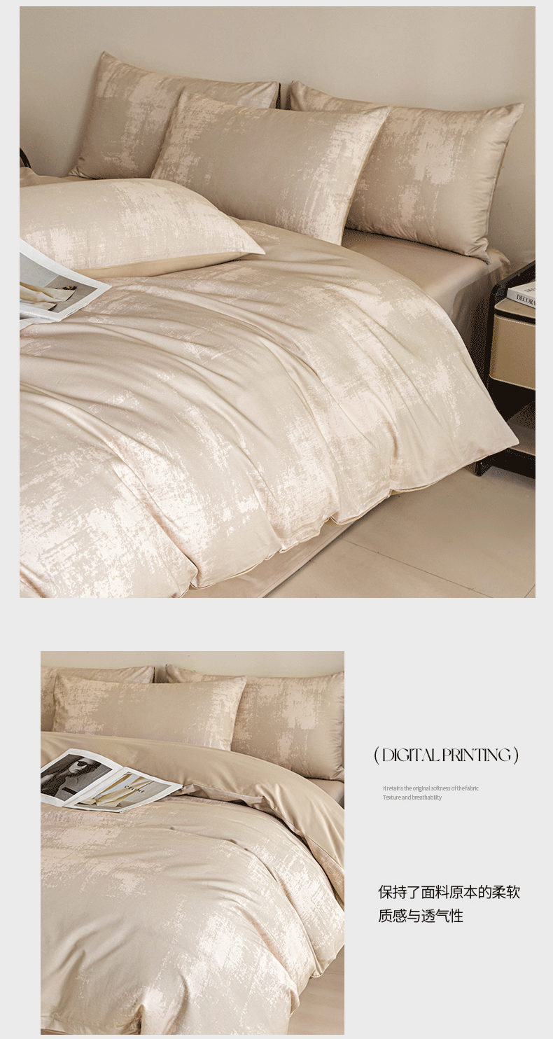(总)新方向 【控价 提供买家秀】2026新款数码印花50s双股全棉贡缎长绒棉四件套-迷境(控价 标准328元 加大348元),迷境-蔷薇粉,迷境-爵士灰