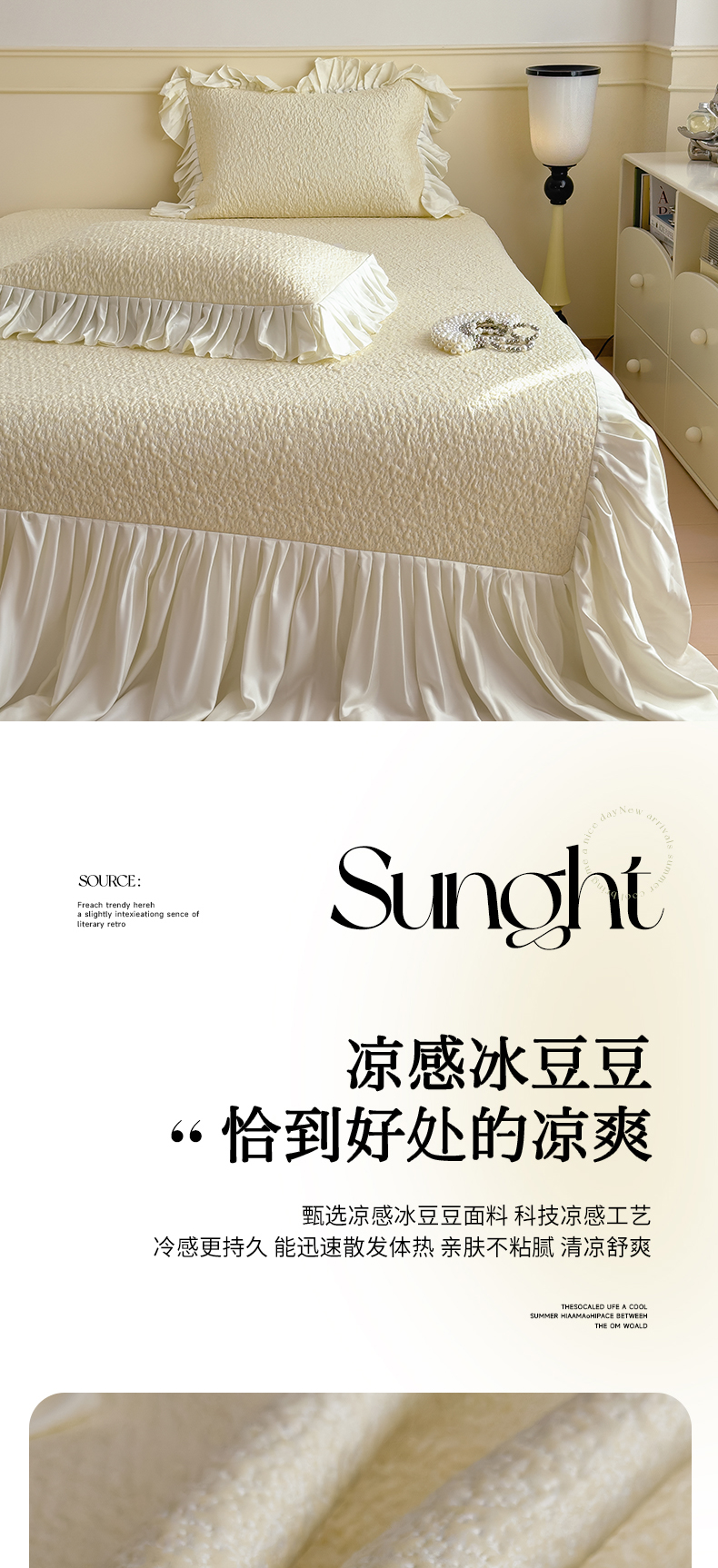 (总)莱家富 2026新款夏季凉感公主风冰豆豆花边凉席床裙款凉感值过0.21三件套可机洗冰丝空,豆豆物语-芭蕾粉,豆豆物语-流连紫,豆豆物语-奶白,豆豆物语-奶咖,豆豆物语-天空蓝,豆豆物语-微微蓝,豆豆物语-飘飘绿
