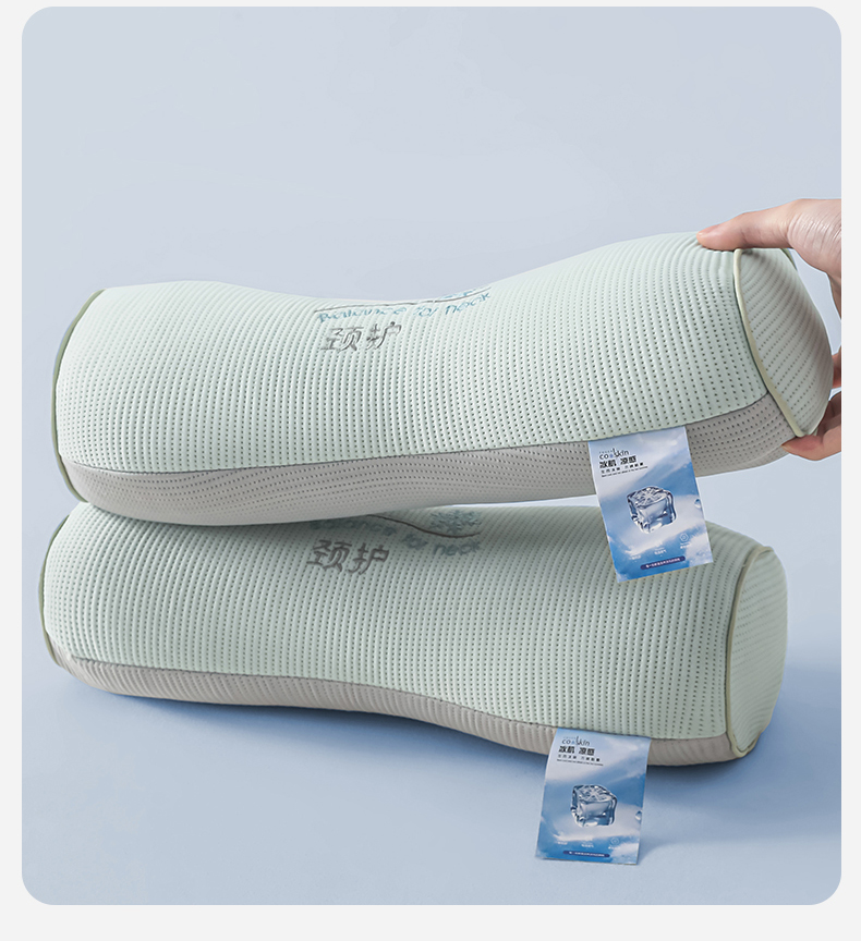 (总)麦肯锡 2025新款CLIIA COOL凉感系列 有氧凉感乳胶护颈枕-模特图,白色48×74cm