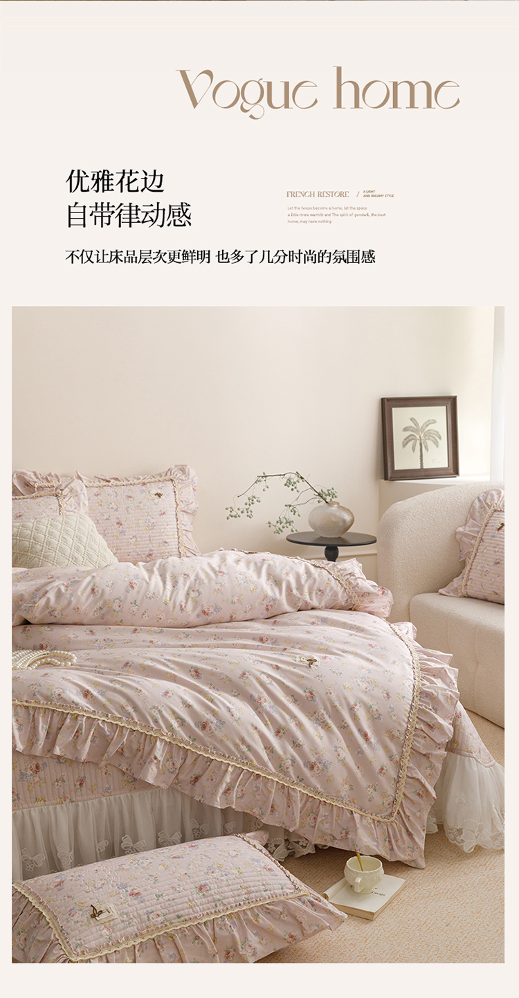 (总)菊上家纺 2023秋冬新品法式花边全棉床盖四件套,安妮紫,花千骨,小欢喜,布拉格,罗蔓莉,玛雅灰,小幸运,卡町绿,恋花影,薇薇安