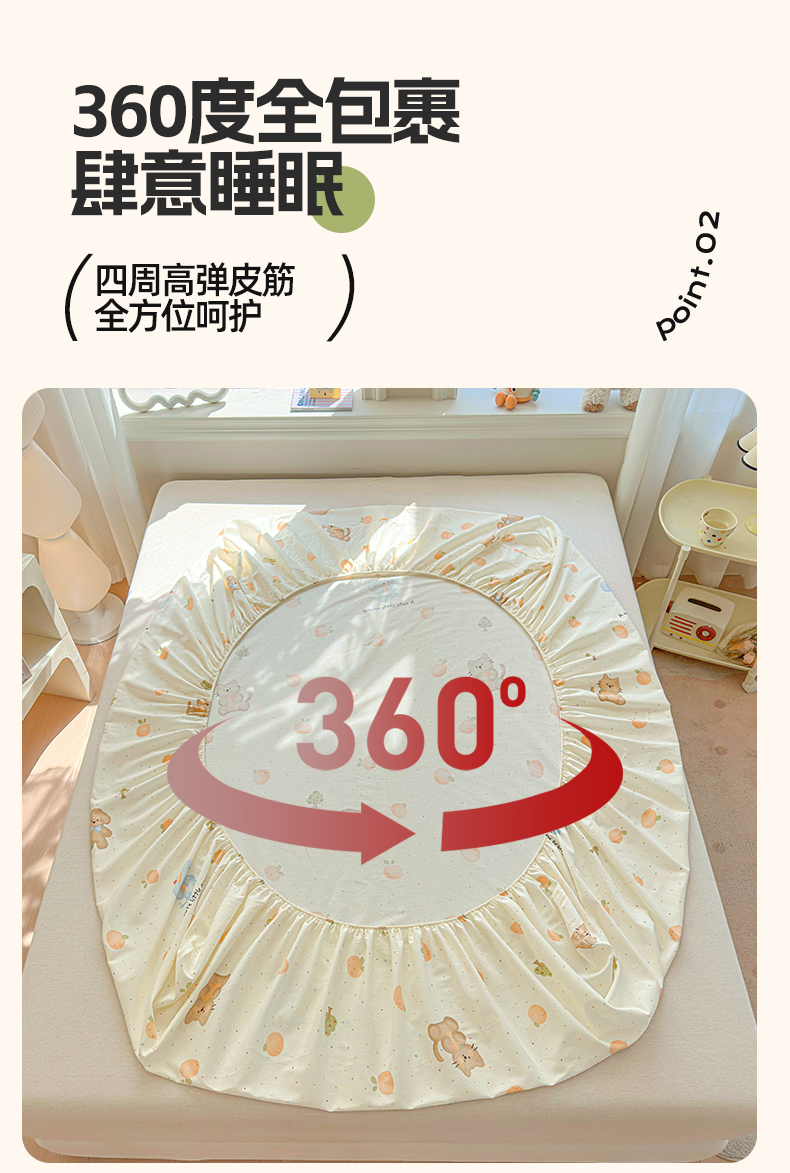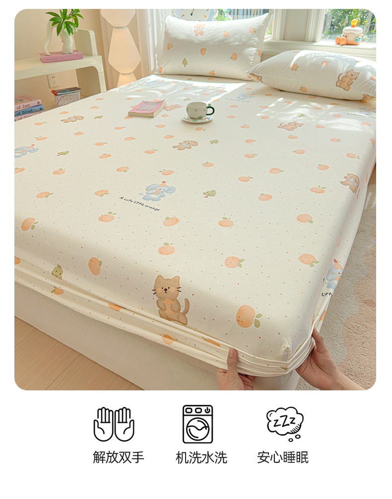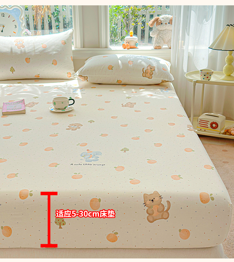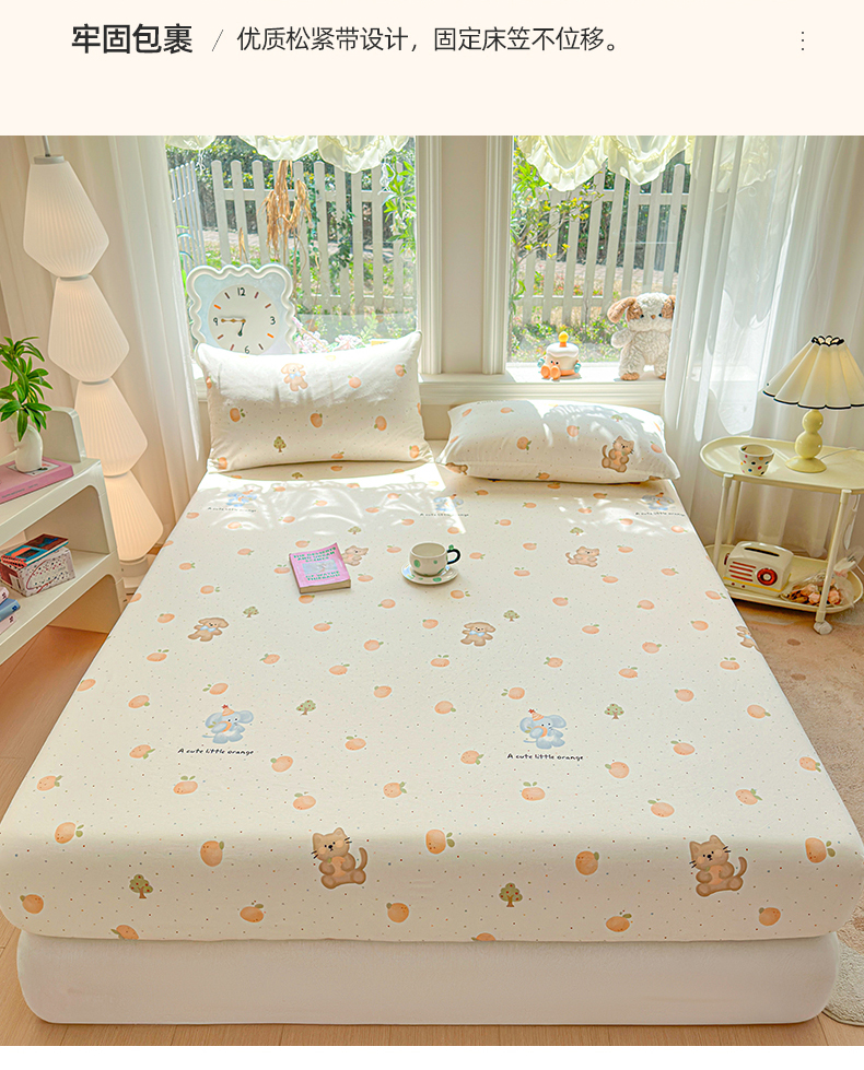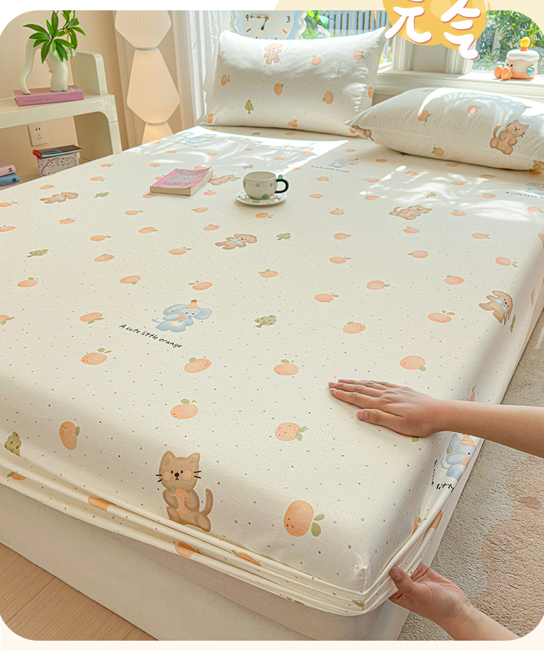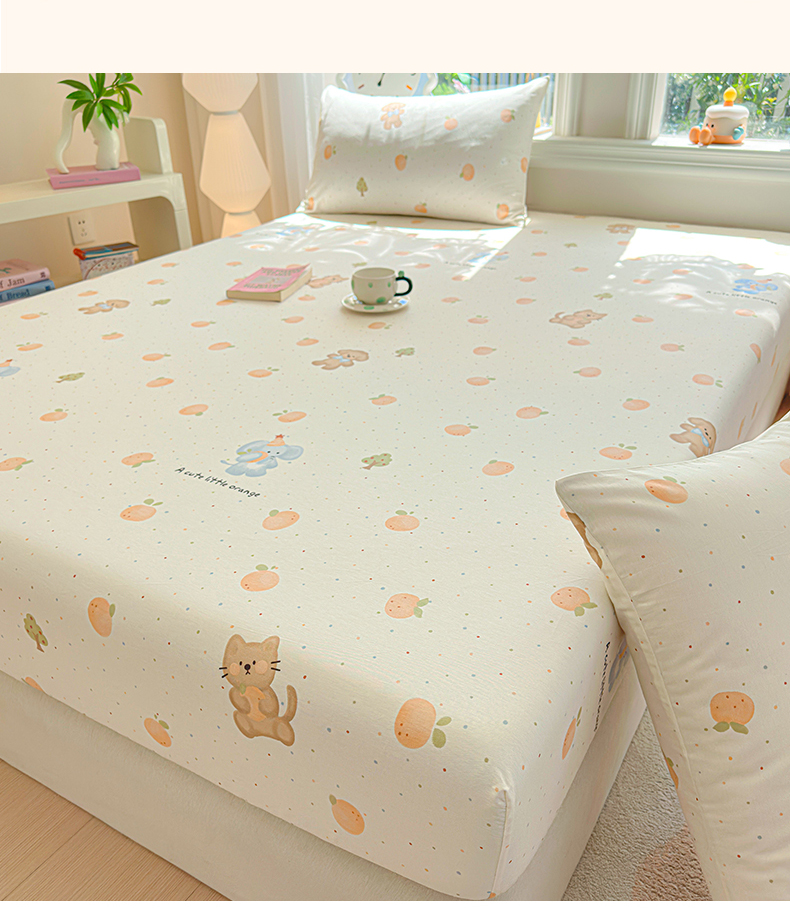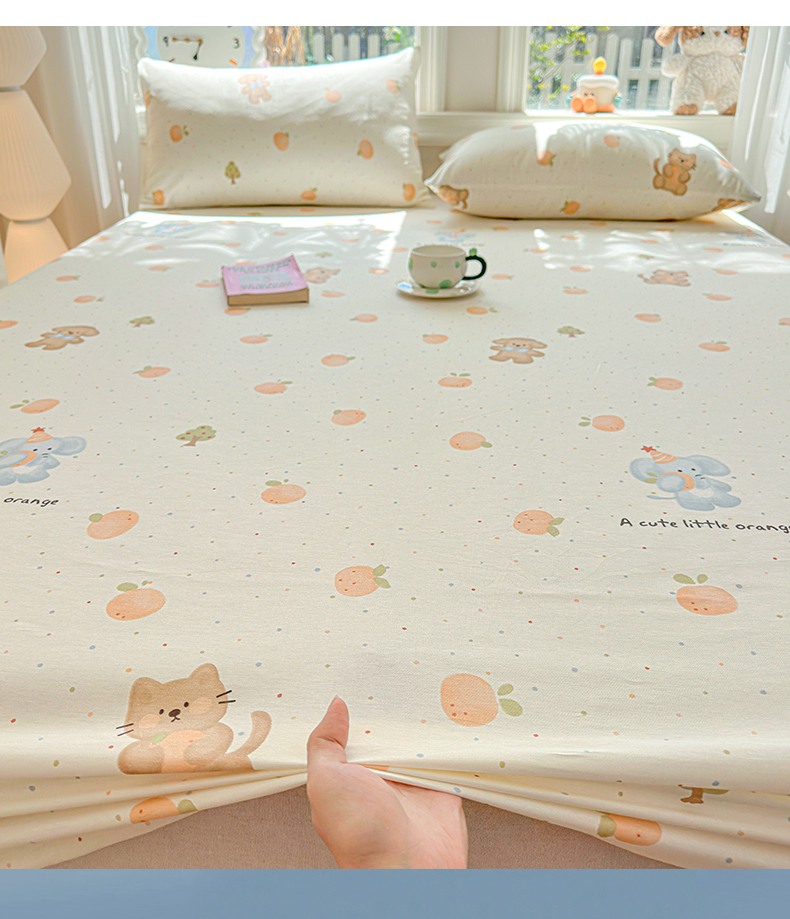 优眠坊 2026春夏新款全棉印花卡通单床笠 橘子象宝