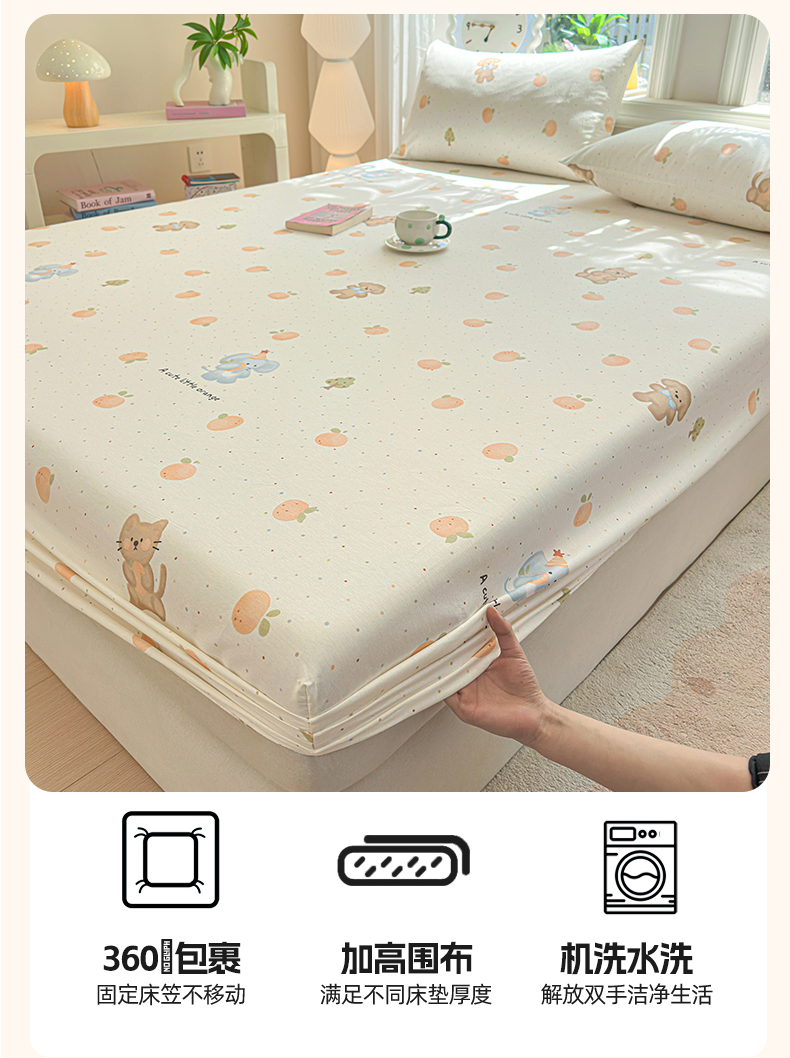 • 91家纺网 家纺一手货源 找家纺 优眠坊 2026春夏新款全棉印花卡通单床笠 橘子象宝