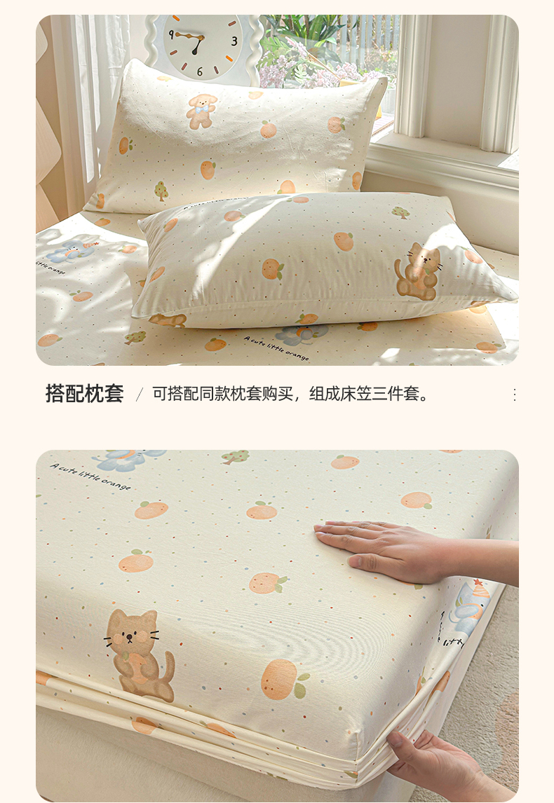 当前位置: 91家纺网 > 商品网购 > 床上用品 > 床笠 > 优眠坊 2026春夏新款全棉印花卡通单床笠 橘子象宝