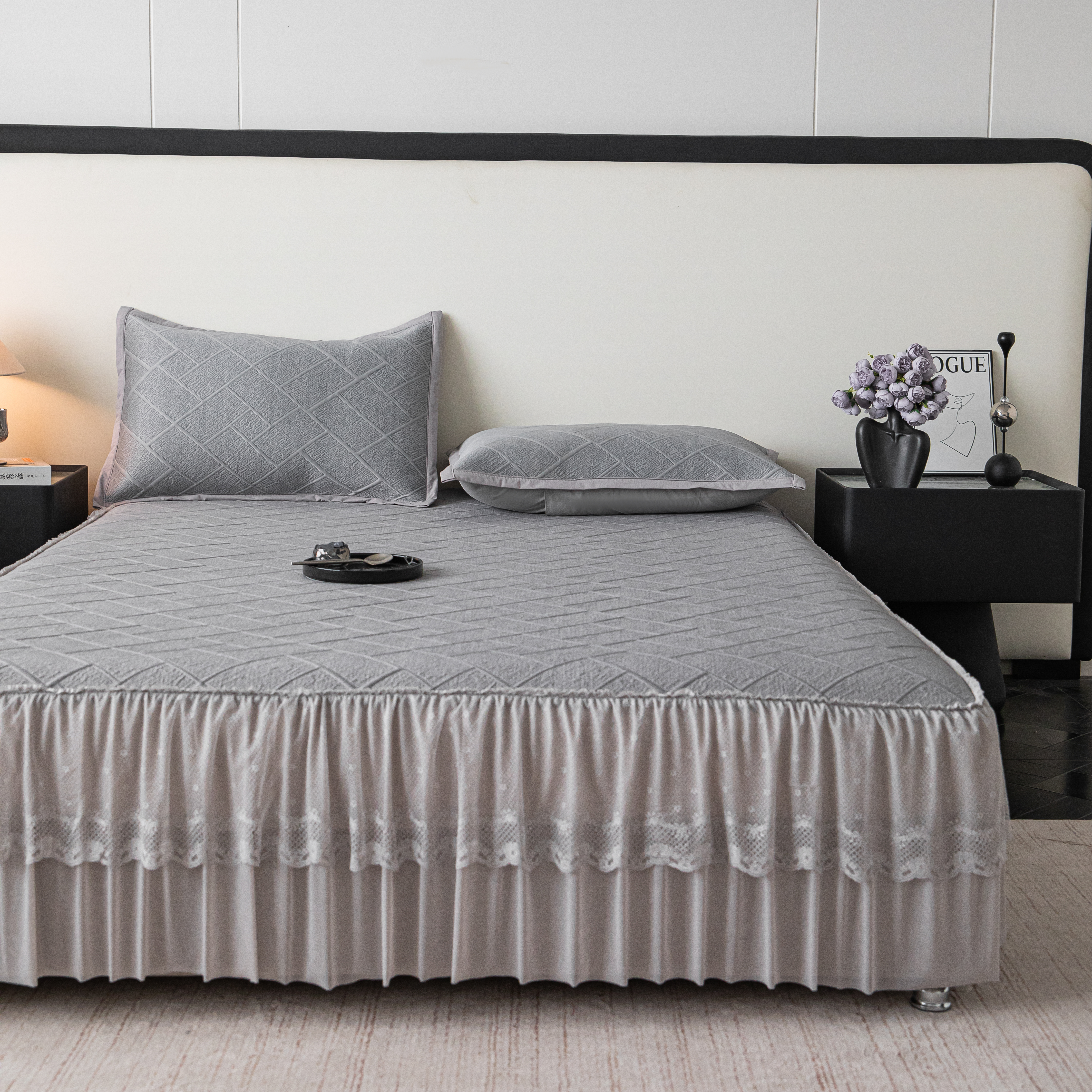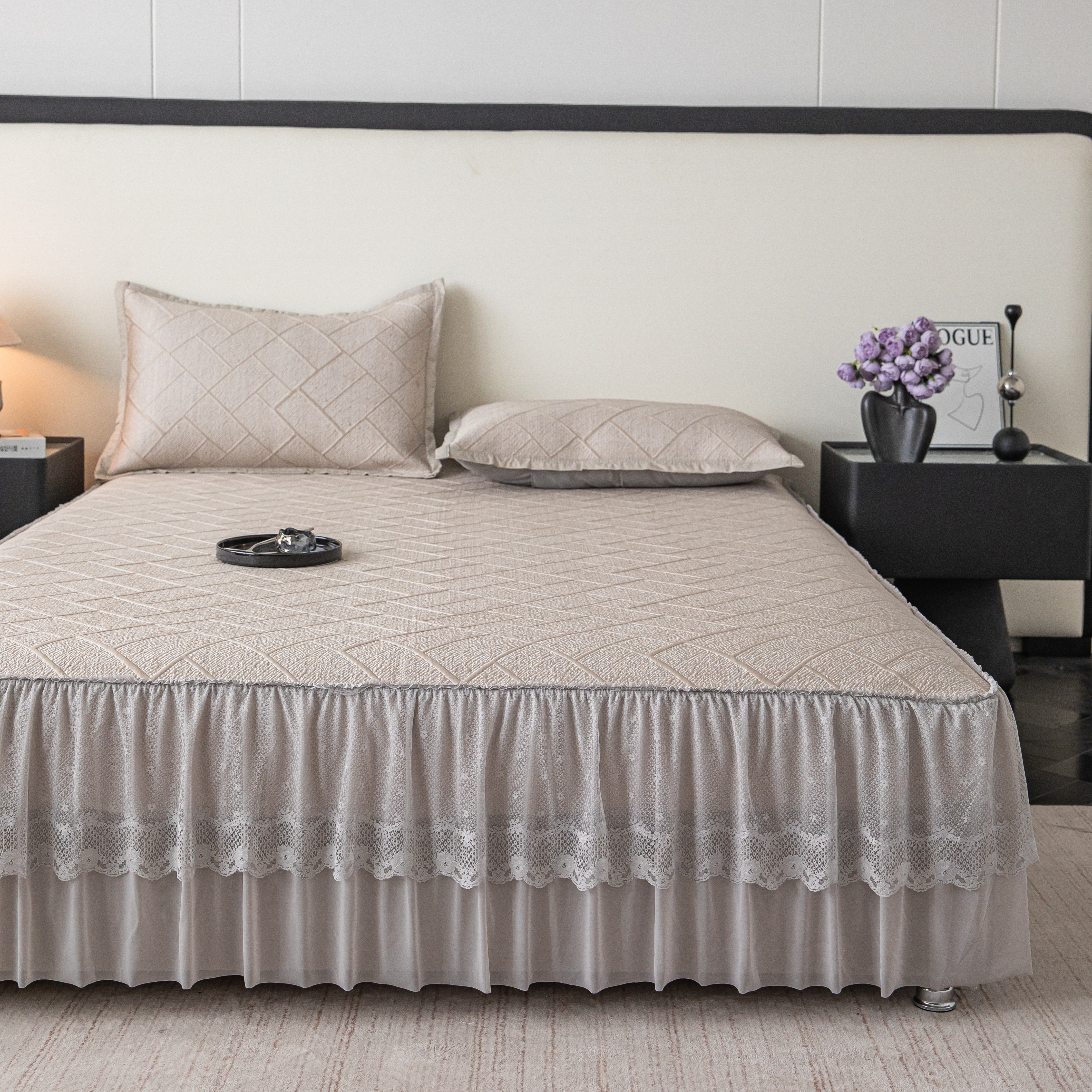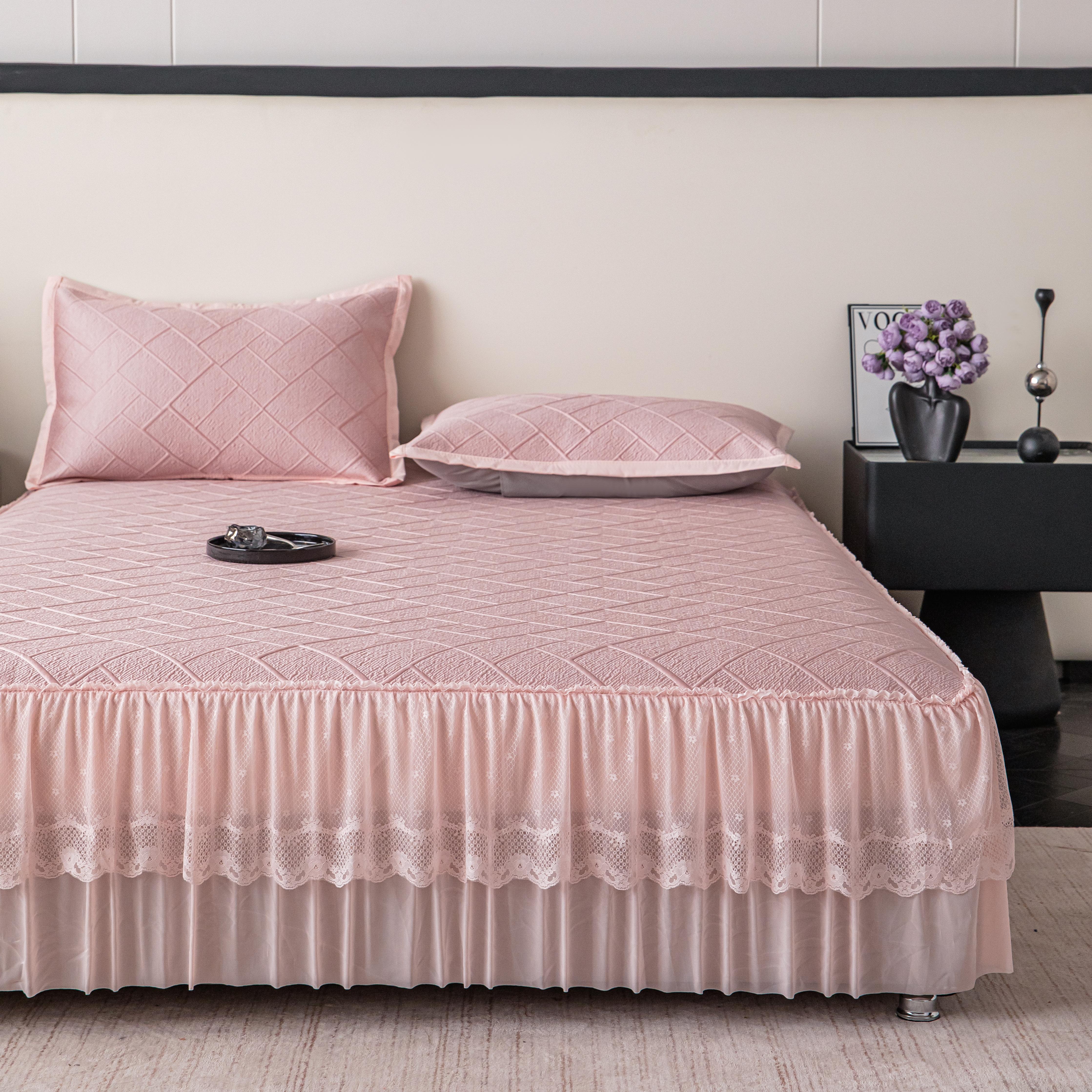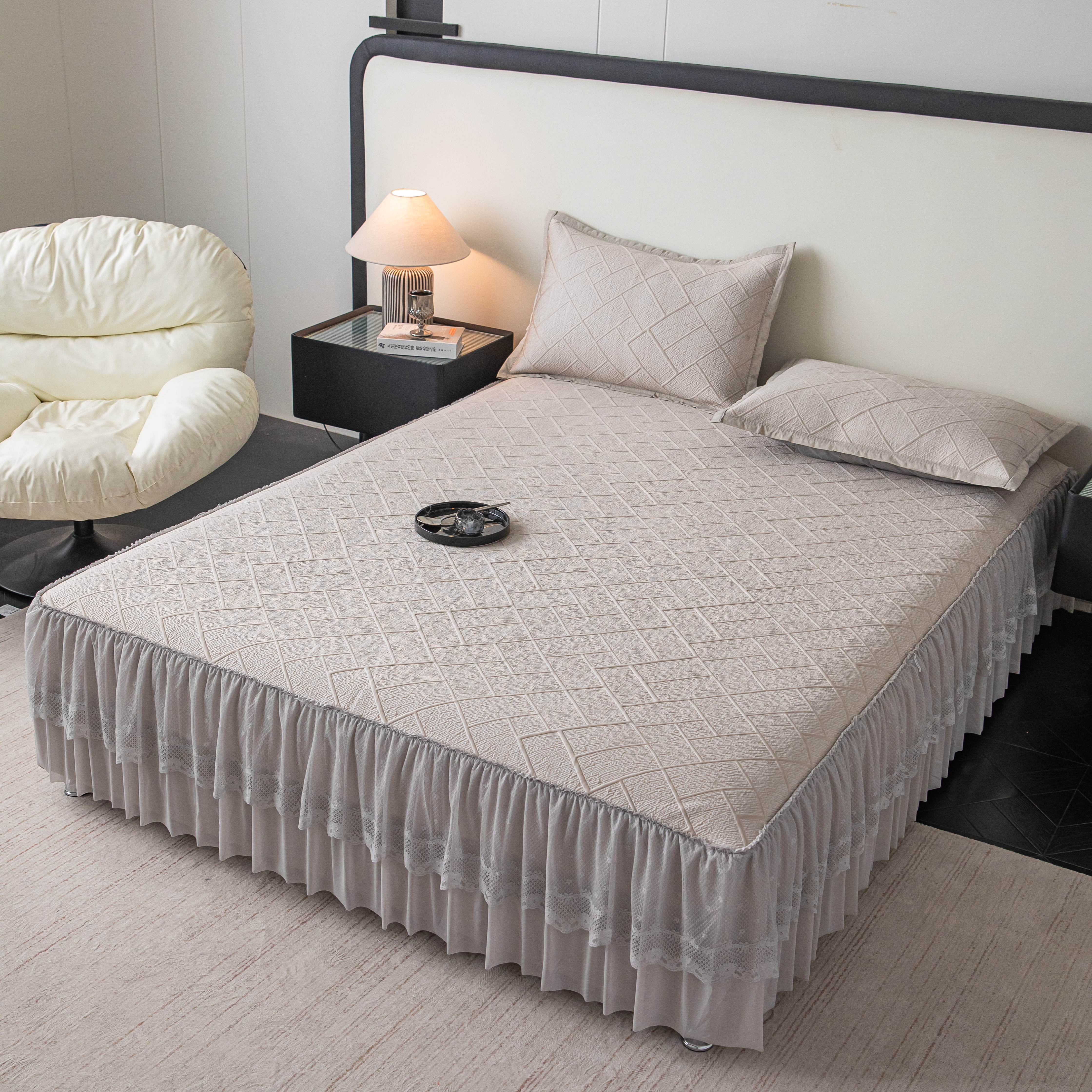 (总)栩裕纺织 2026新款全棉双层纱棉花边榻榻米炕盖款,波点粉,波点灰,波点绿,波点米,波点杏,波点紫,组合图仅供参考