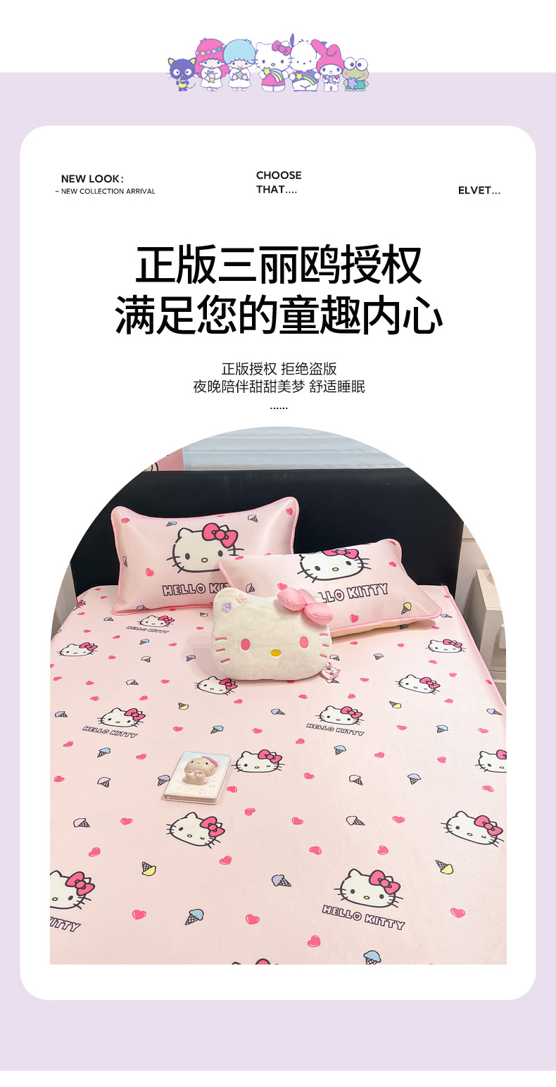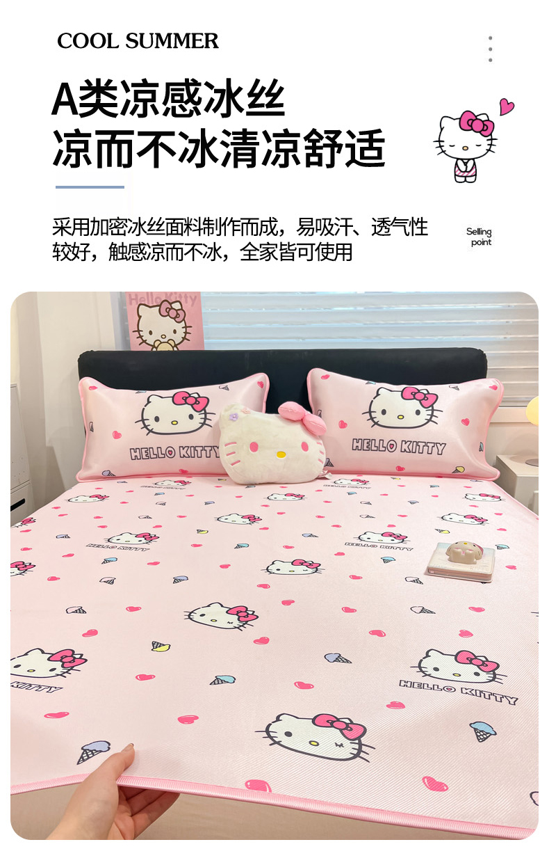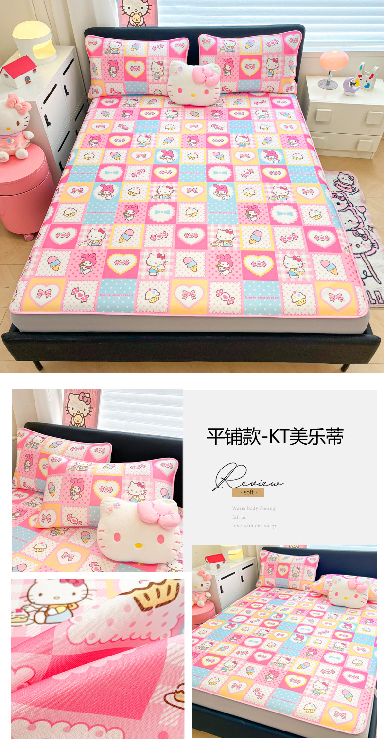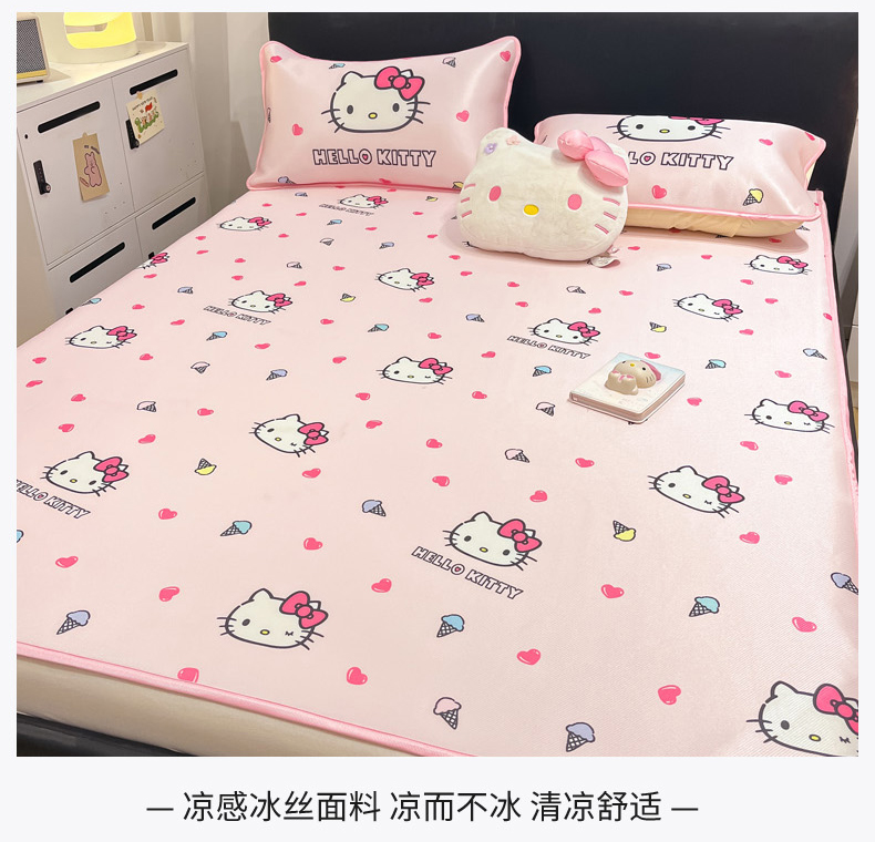 当前位置: 91家纺网 > 商品网购 > 床上用品 > 凉席 > 凉席套件 > 暮思家居 2026新款三丽鸥正版授权数码印花A类可机洗1200D冰丝凉席三件套平铺款系列 平铺款-甜筒KT