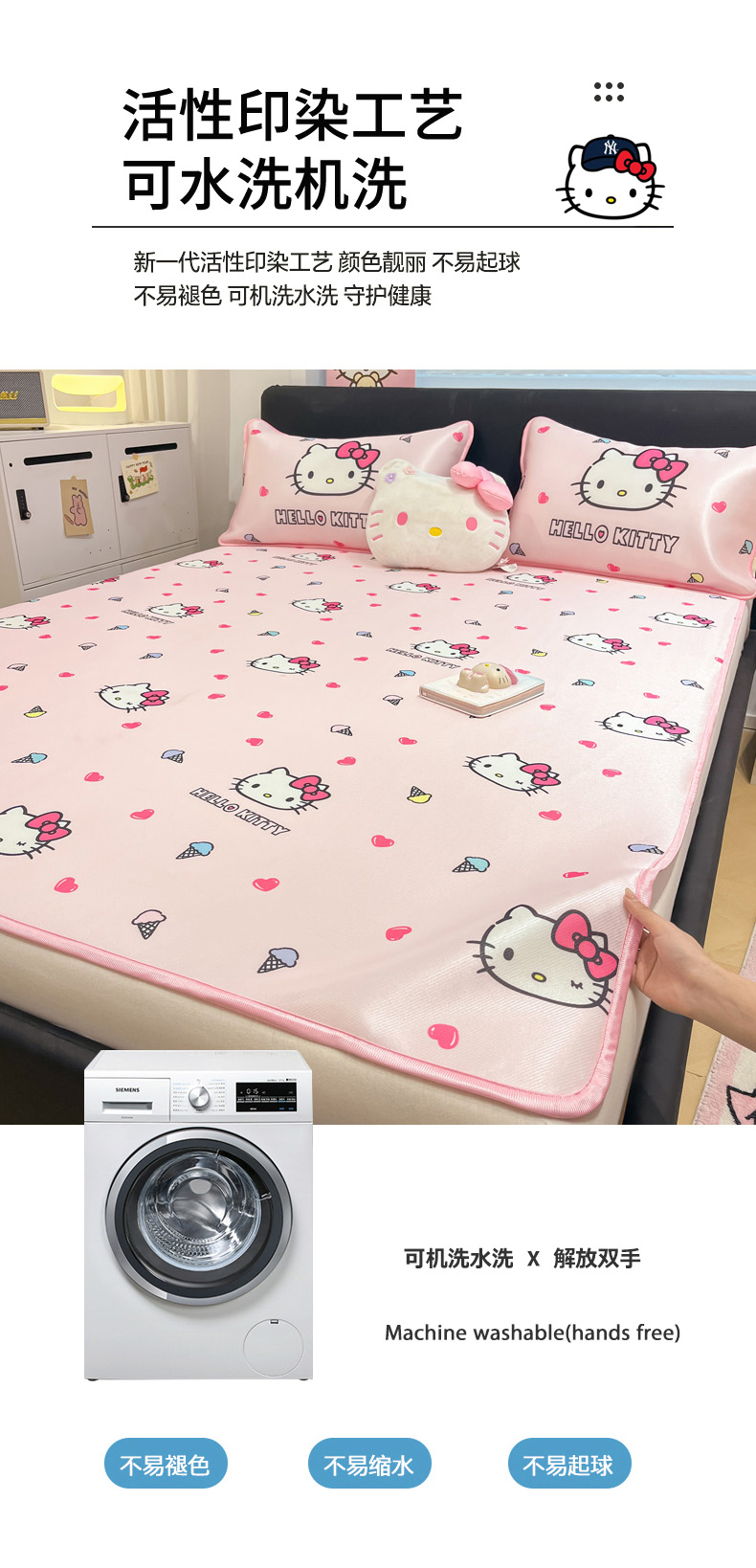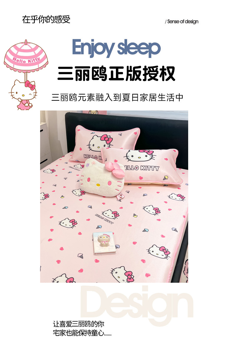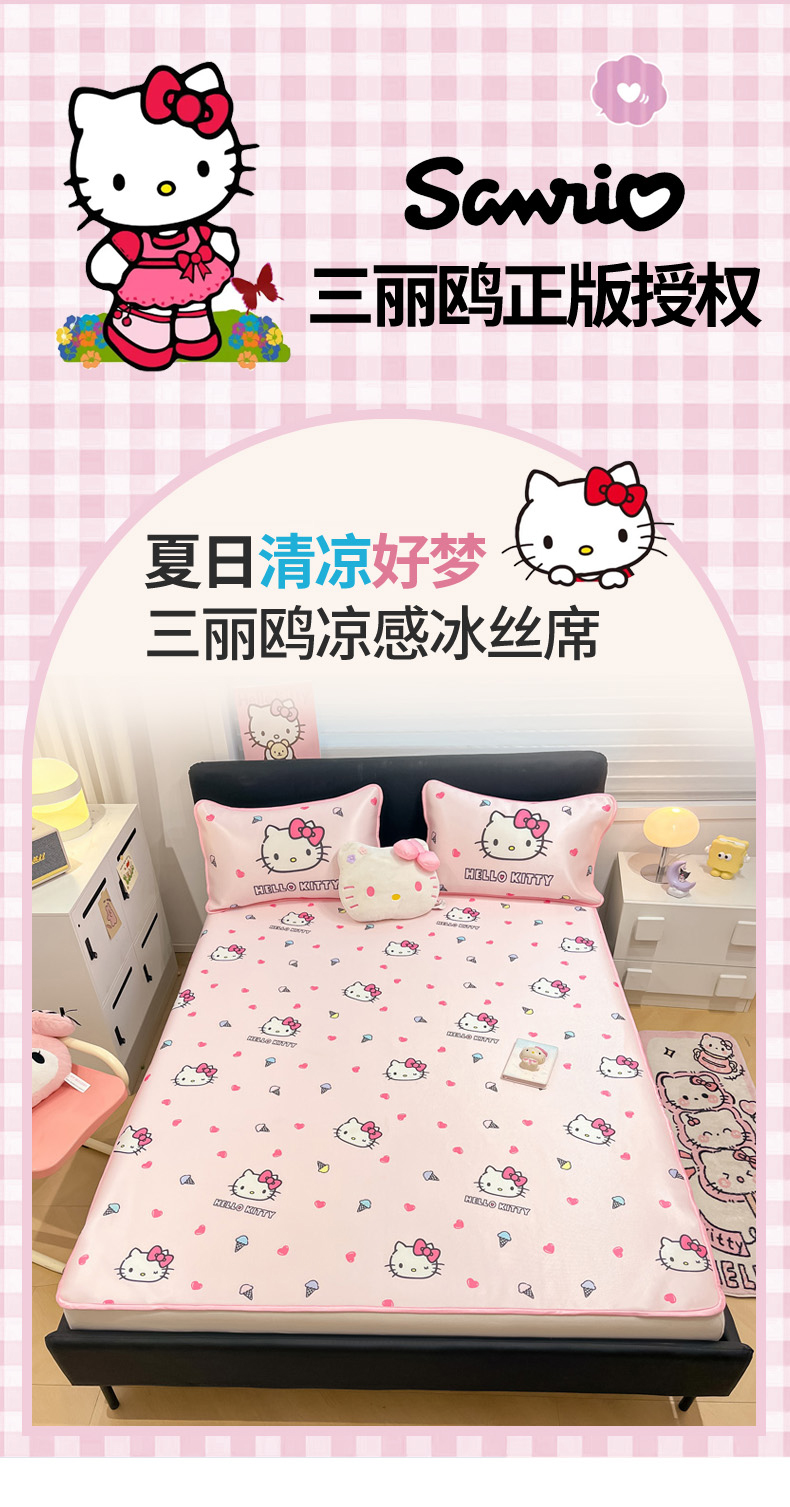 当前位置: 91家纺网 > 商品网购 > 床上用品 > 凉席 > 凉席套件 > 暮思家居 2026新款三丽鸥正版授权数码印花A类可机洗1200D冰丝凉席三件套平铺款系列 平铺款-甜筒KT